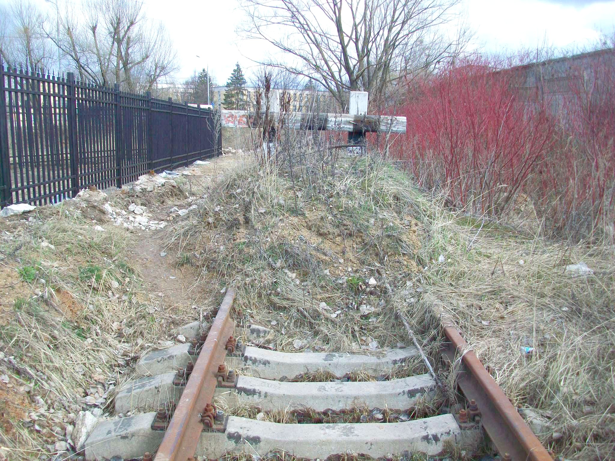 Здесь заканчивается железнодорожная линия Крюково-Грузовое. Впереди — проспект Генерала Алексеева.