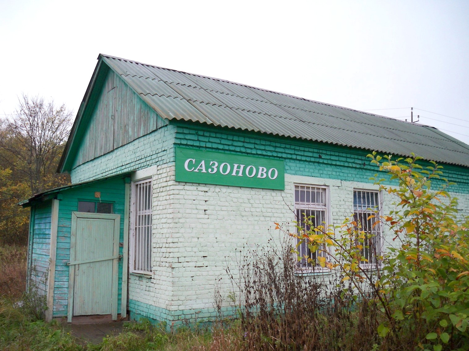 Станция Сазоново. Посадочная платформа и здание ДС.