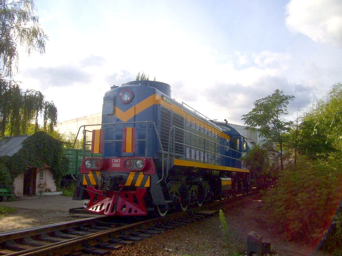 Тепловоз ТЭМ2-2660 в ходе манёвров на станции Заводская.