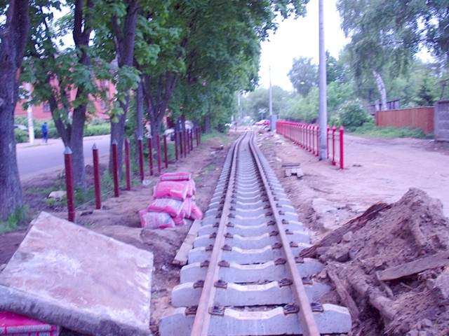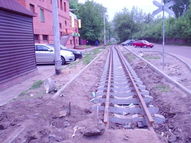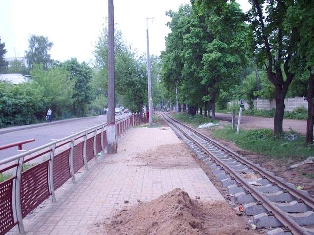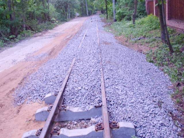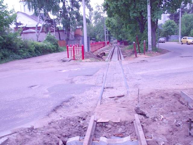 Узкоколейная железная дорога приближается к Нижегородской улице.