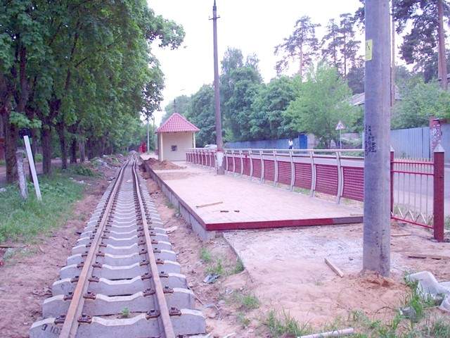 Начало низкой платформы на остановочном пункте Школьная. Вид от Нижегородской улицы.