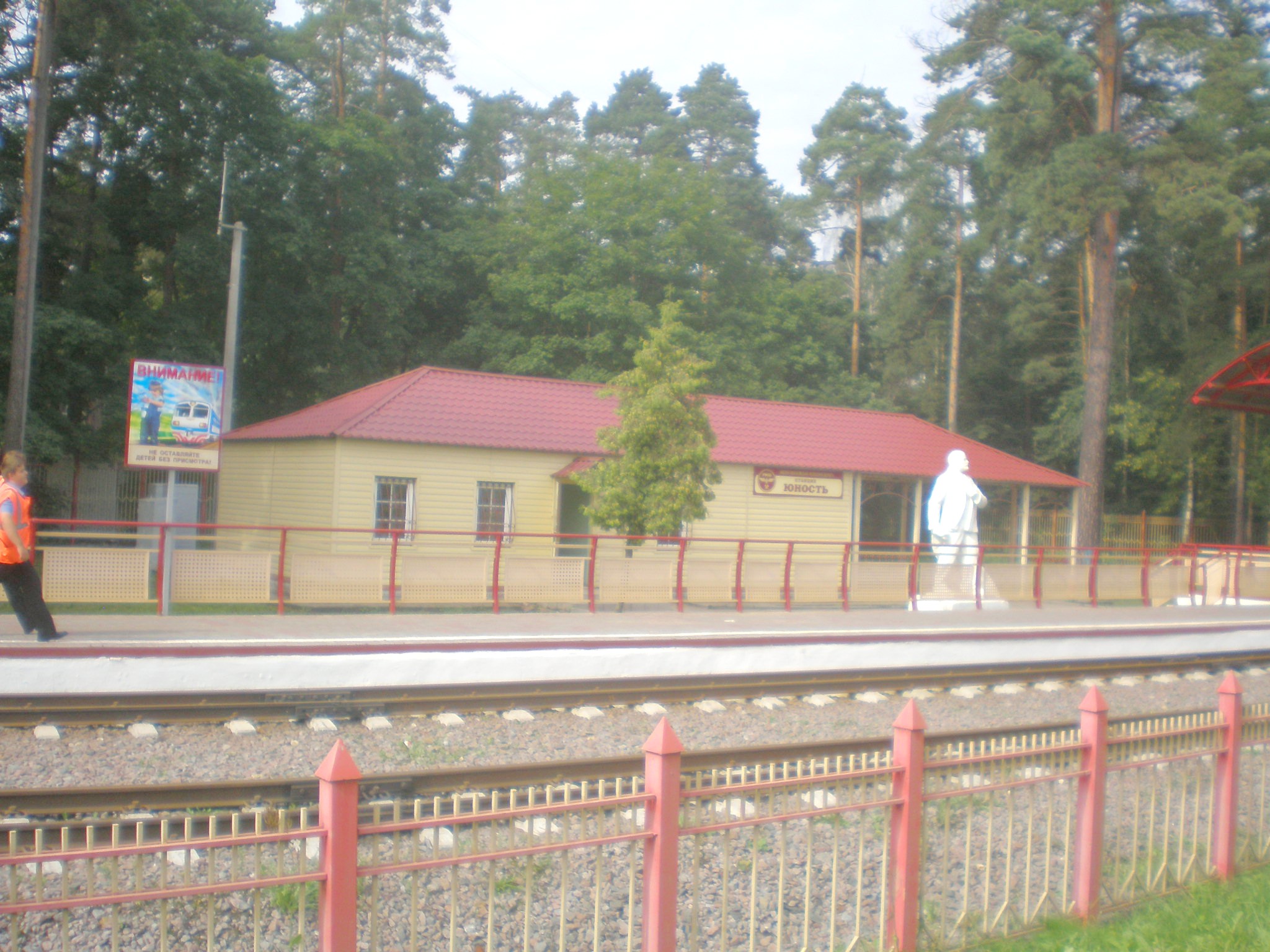 Пассажирский поезд отправился со станции Юность. Вид в сторону станции Пионерская.