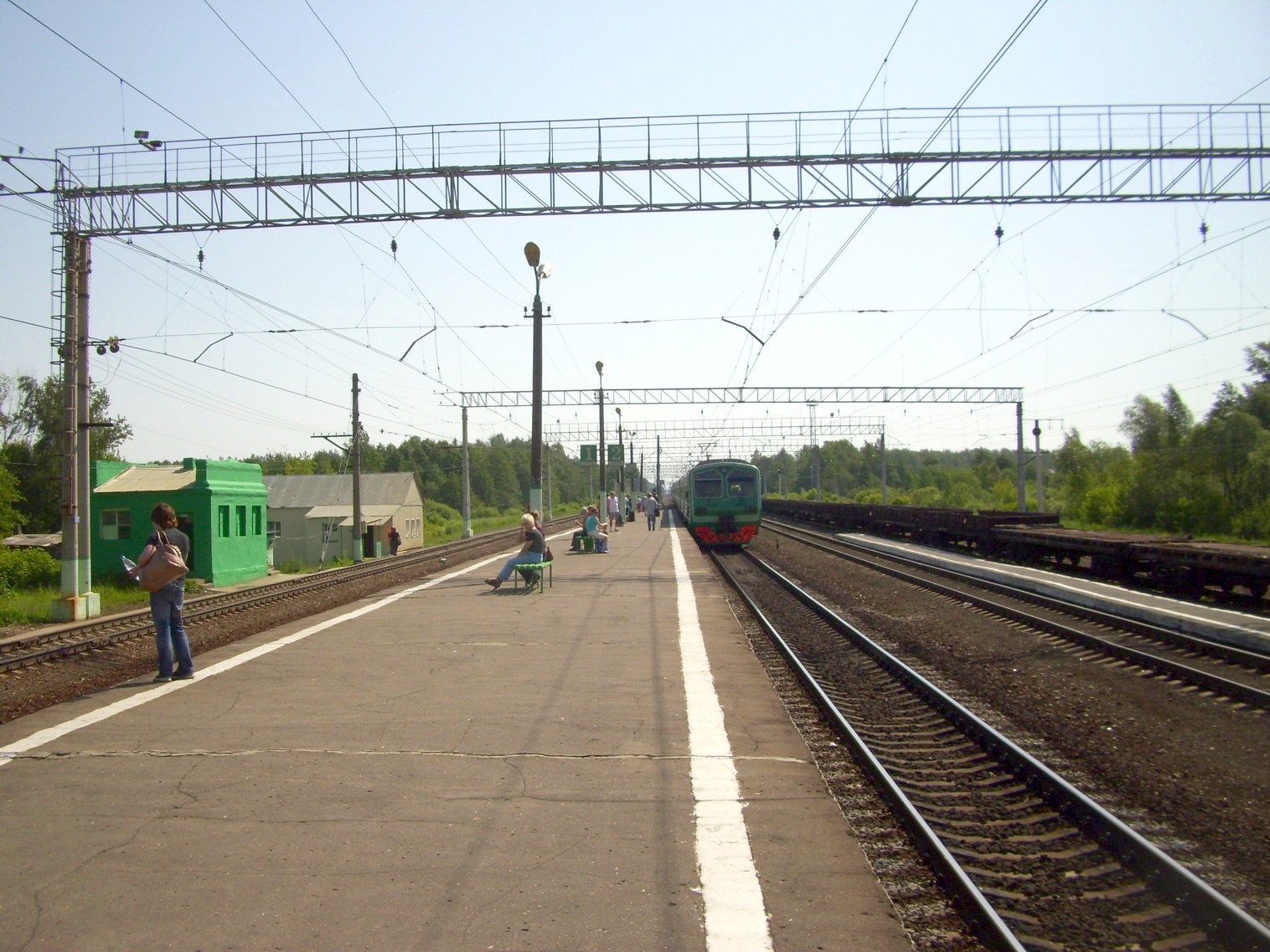 Низкая платформа, обслуживающая поезд Кривандино — Рязановка. Вид на восток.