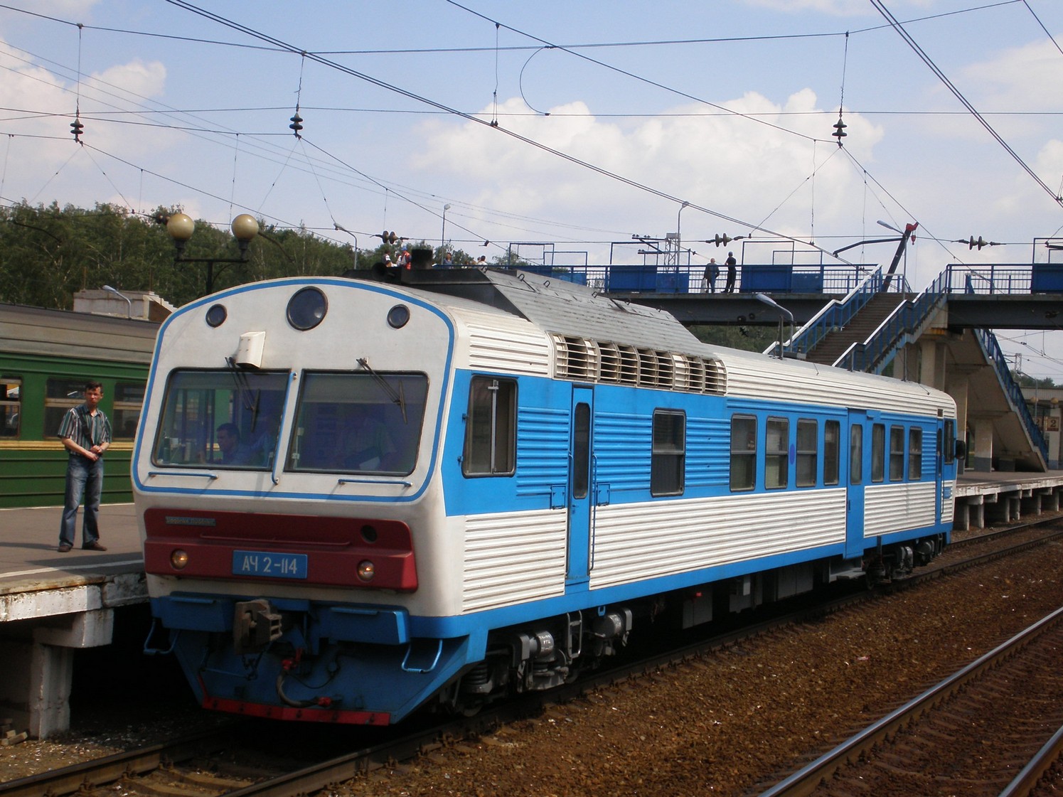 Автомотриса АЧ2-114 у второй платформы. Вид с первой платформы.