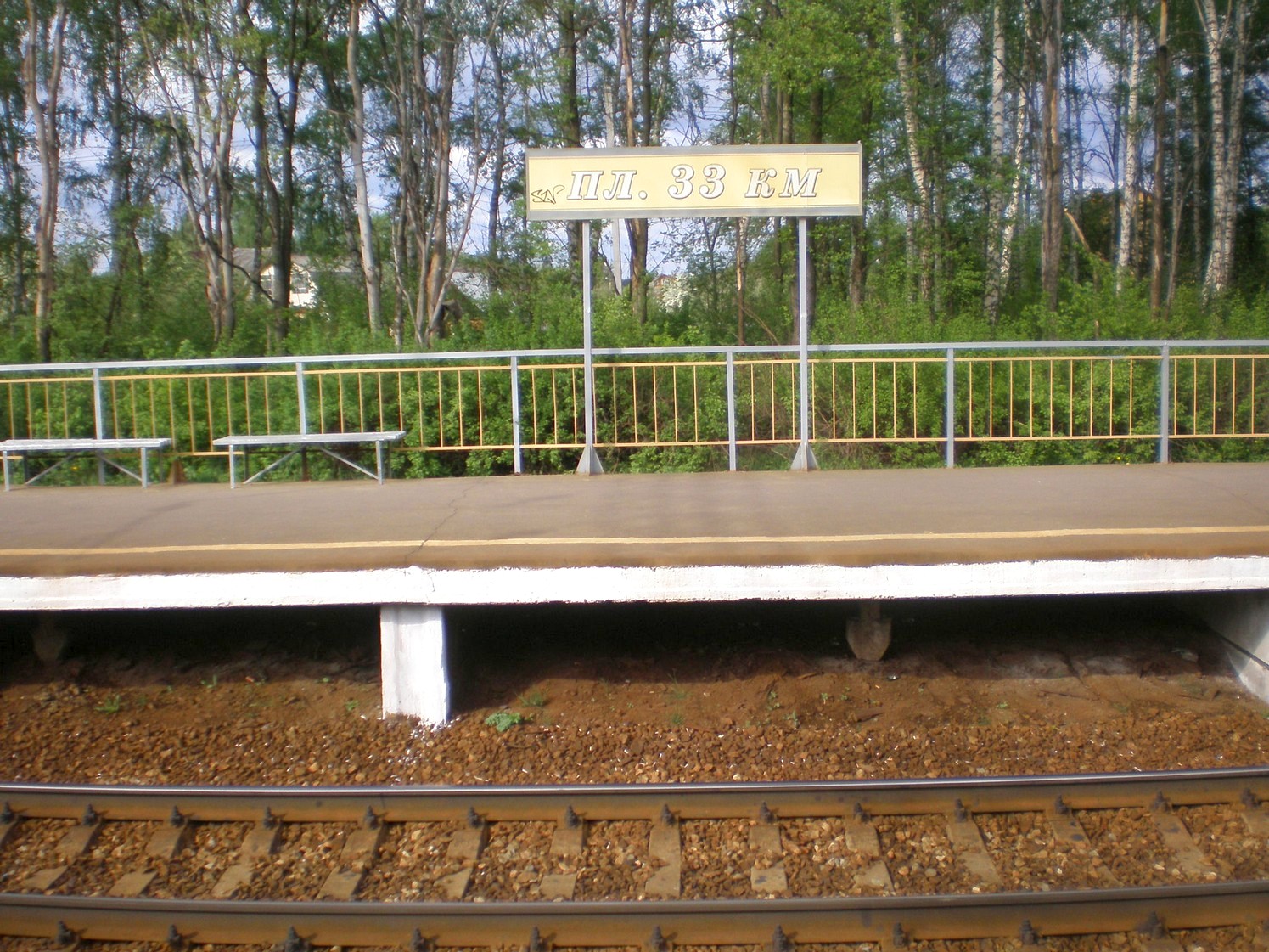 Остановочный пункт 33 км. Вид с «чётной» платформы (направление движения из Москвы) в западном направлении.