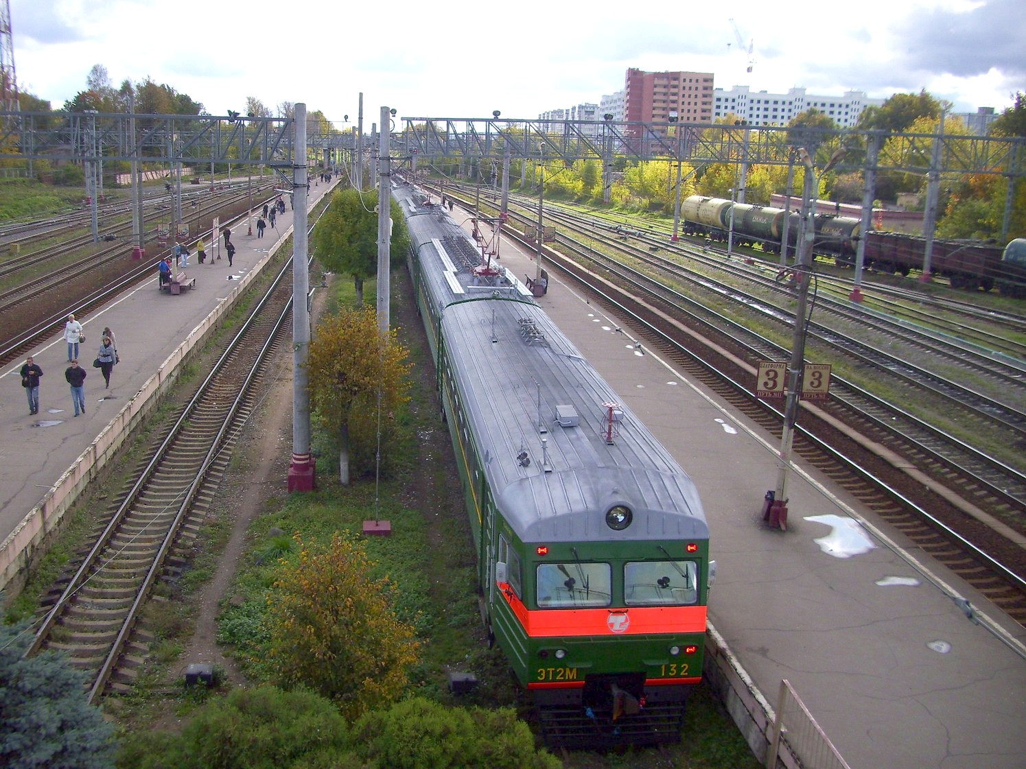 Вид с переходного моста в южном направлении. Электропоезд ЭТ2М-132 в тупике.