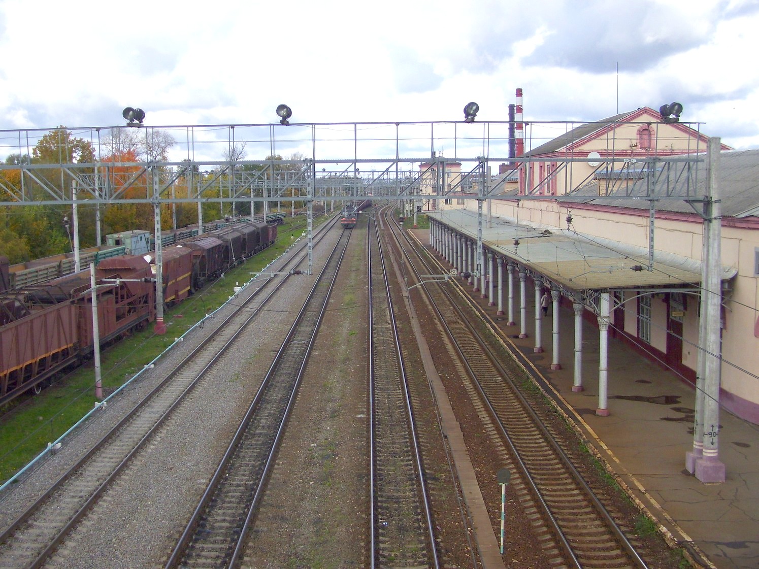 Станция Клин. Вид в северном направлении с путепровода, расположенного южнее станции.