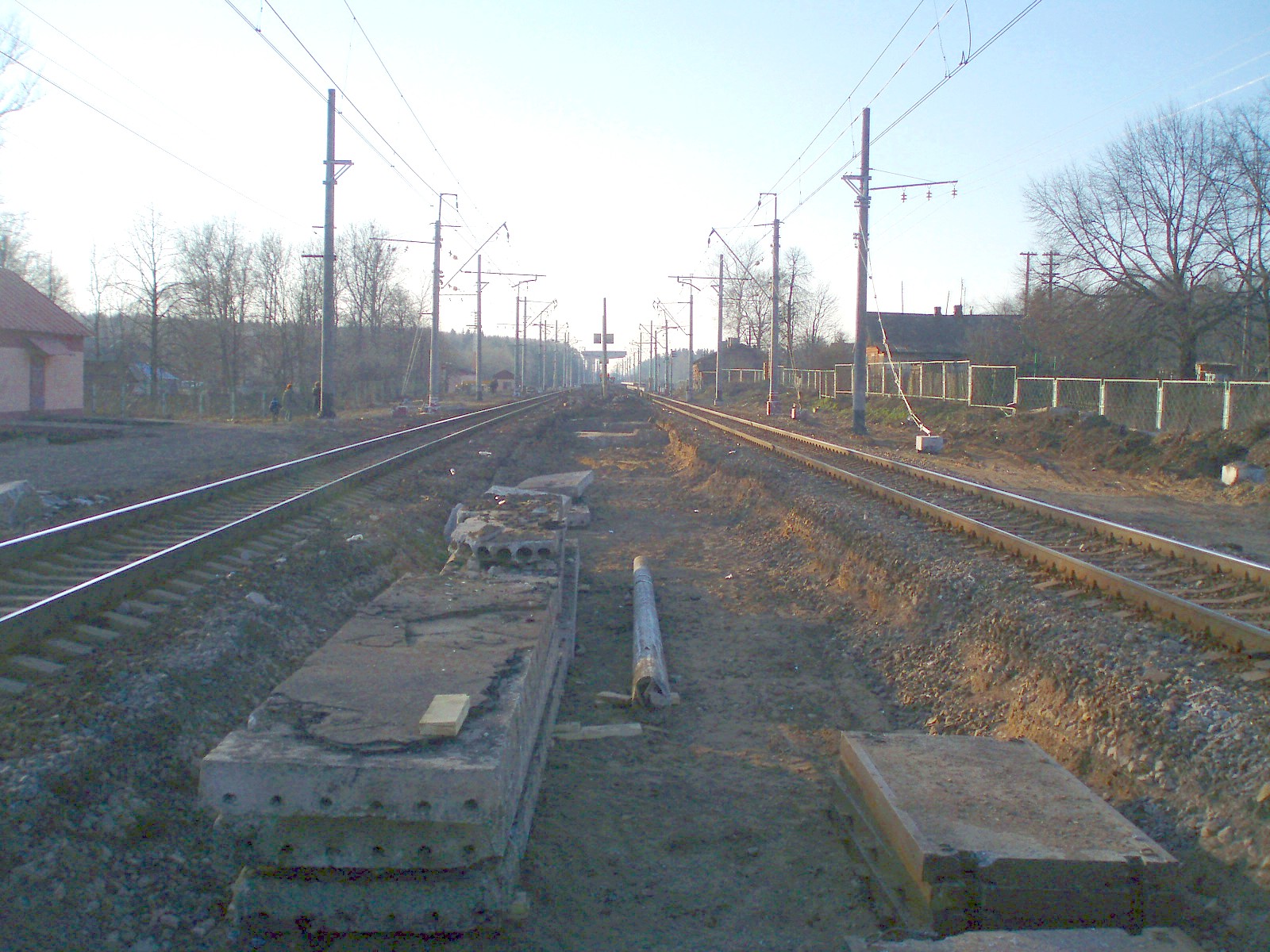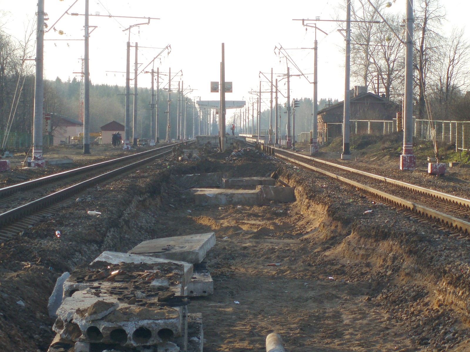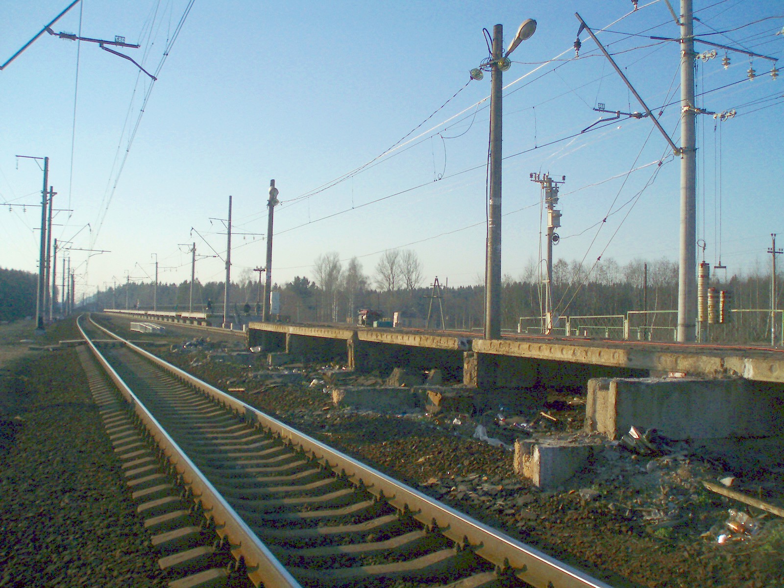 Временная платформа. Вид на юг, в сторону станции Подсолнечная.
