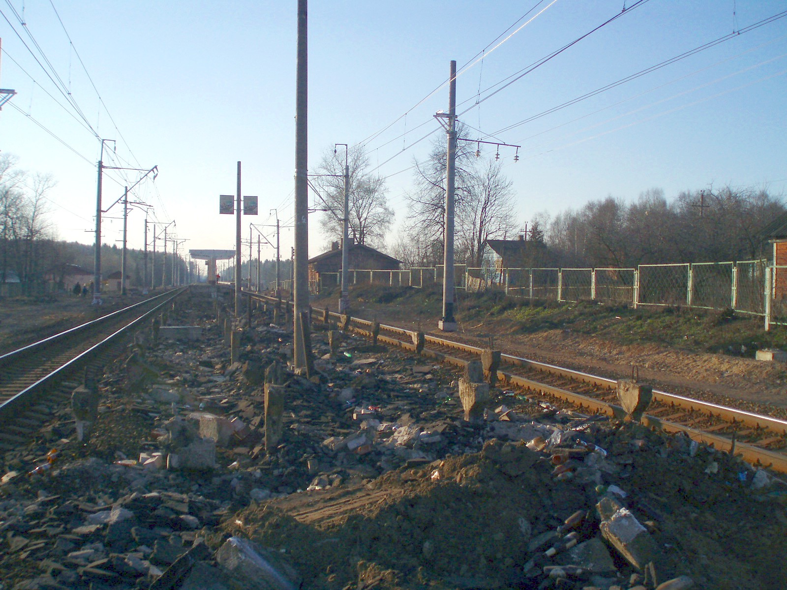 Сносимая островная платформа. Вид в восточном направлении. Жилая казарма (бывшее станционное здание).