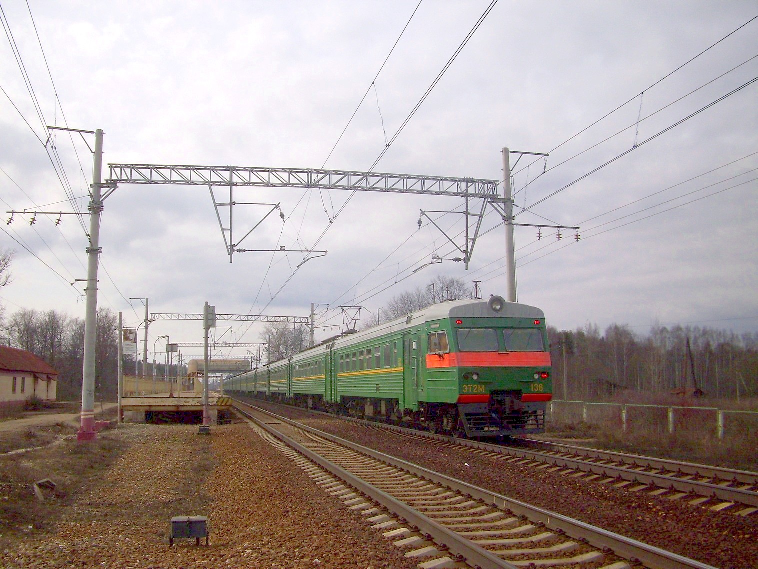 Электропоезд ЭТ2М-136 следует в сторону Твери.