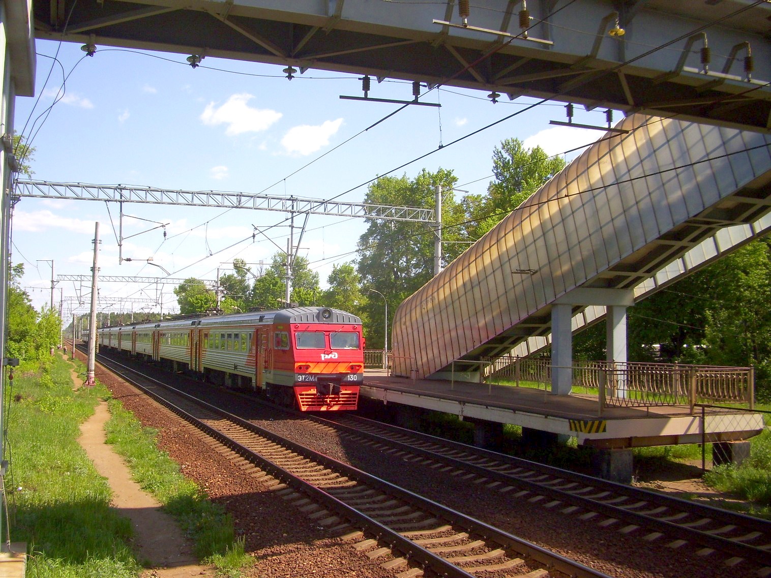 Платформа №2 (направление движения Москва — Тверь) и пешеходный мост. Вид с северо-восточной стороны.