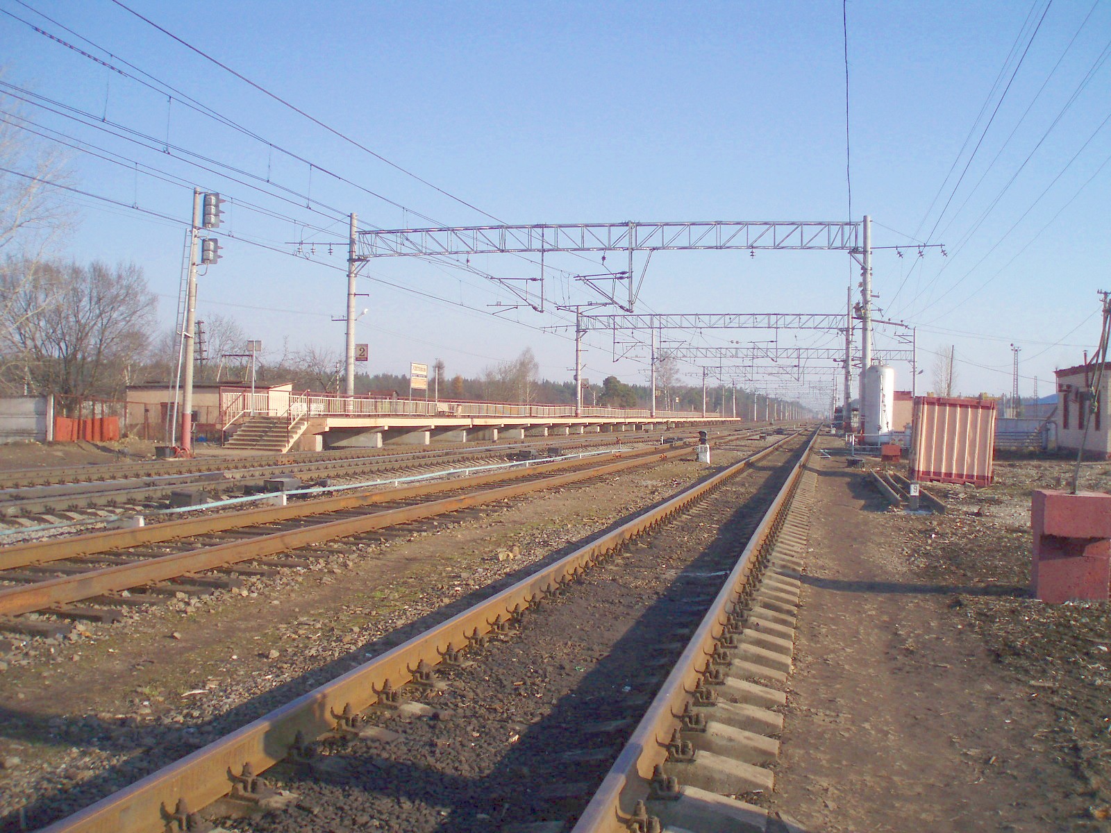 Пешеходный переход через пути, расположенный южнее платформы №1. Вид в южном направлении.