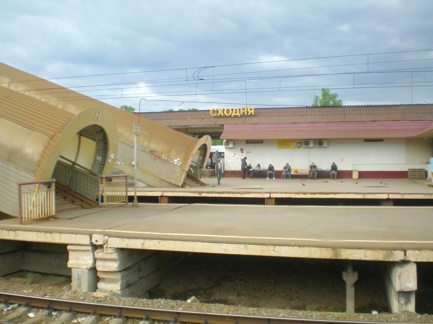 Станция Сходня. Вид с переходного моста на юг, в сторону Москвы. В центре — третья платформа, справа —