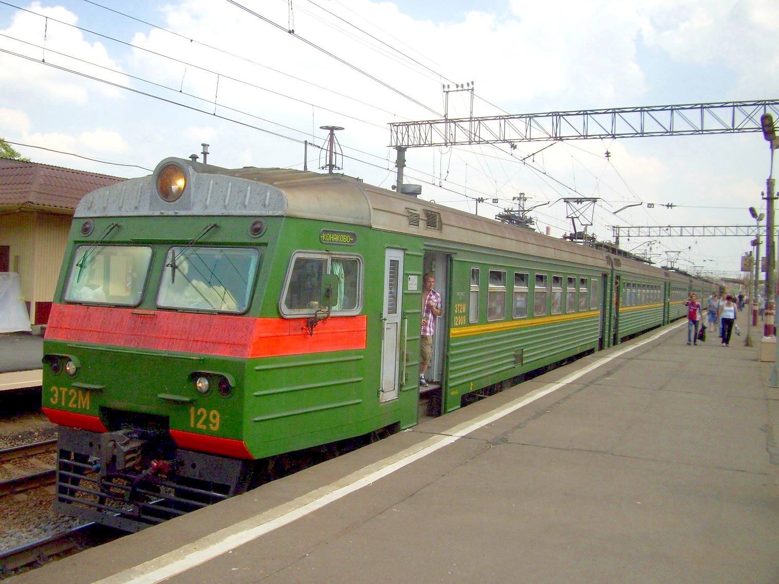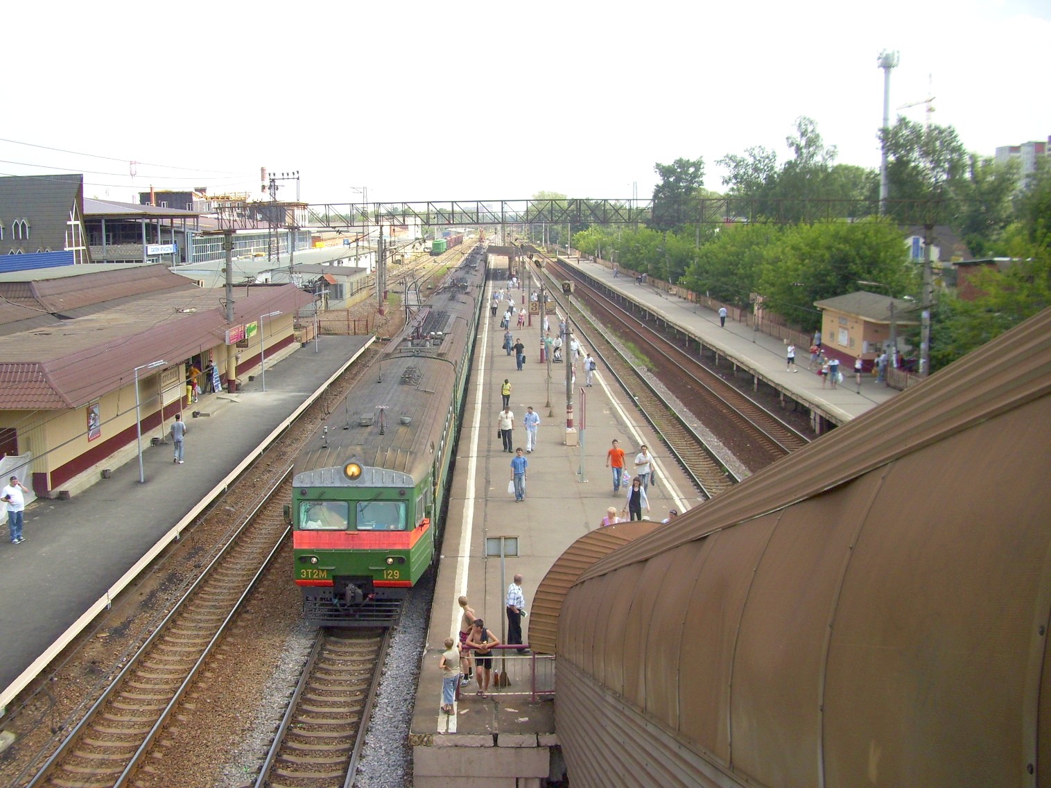 Вид с переходного моста на юг, в сторону Москвы. Электропоезд ЭТ2М-129 у третьей платформы.