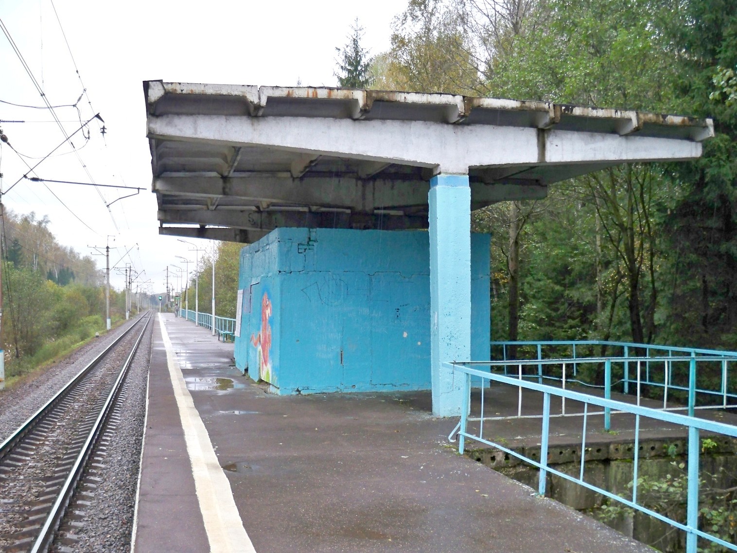 Платформа 141 км. Вид в западном направлении. Вдали — навес и кассовый павильон.