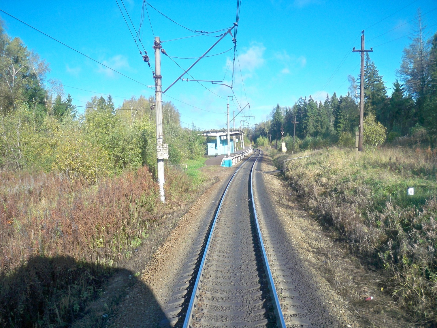 Впереди находится платформа 149 км. Вид на запад, в сторону Шаховской.