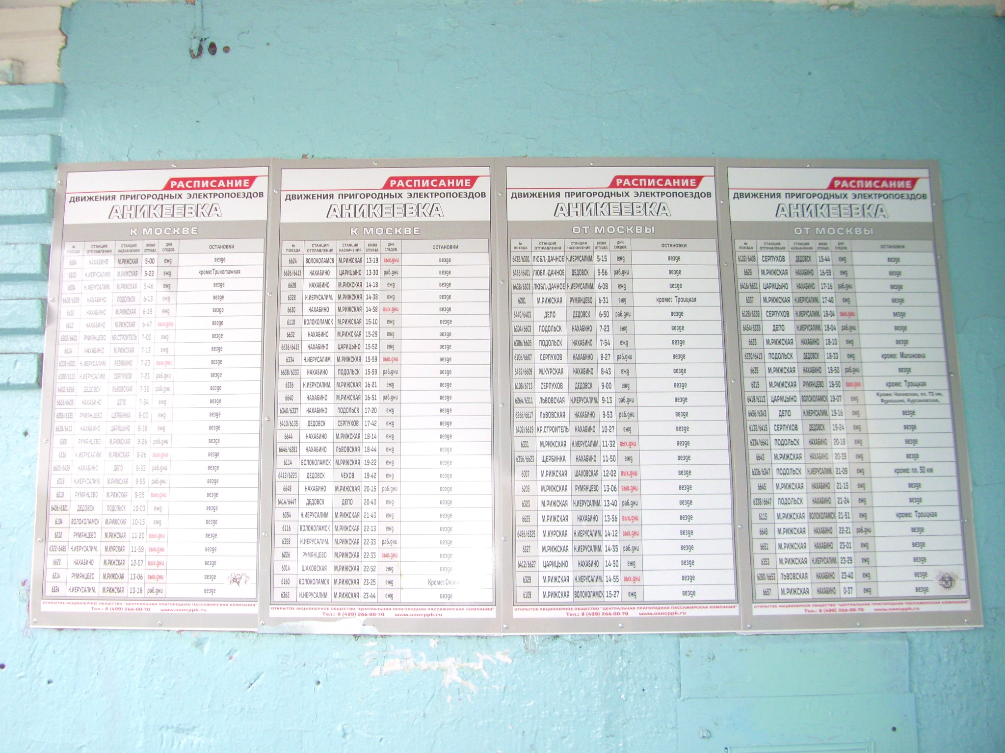 Кассовый павильон на платформе №2. Расписание движения поездов.