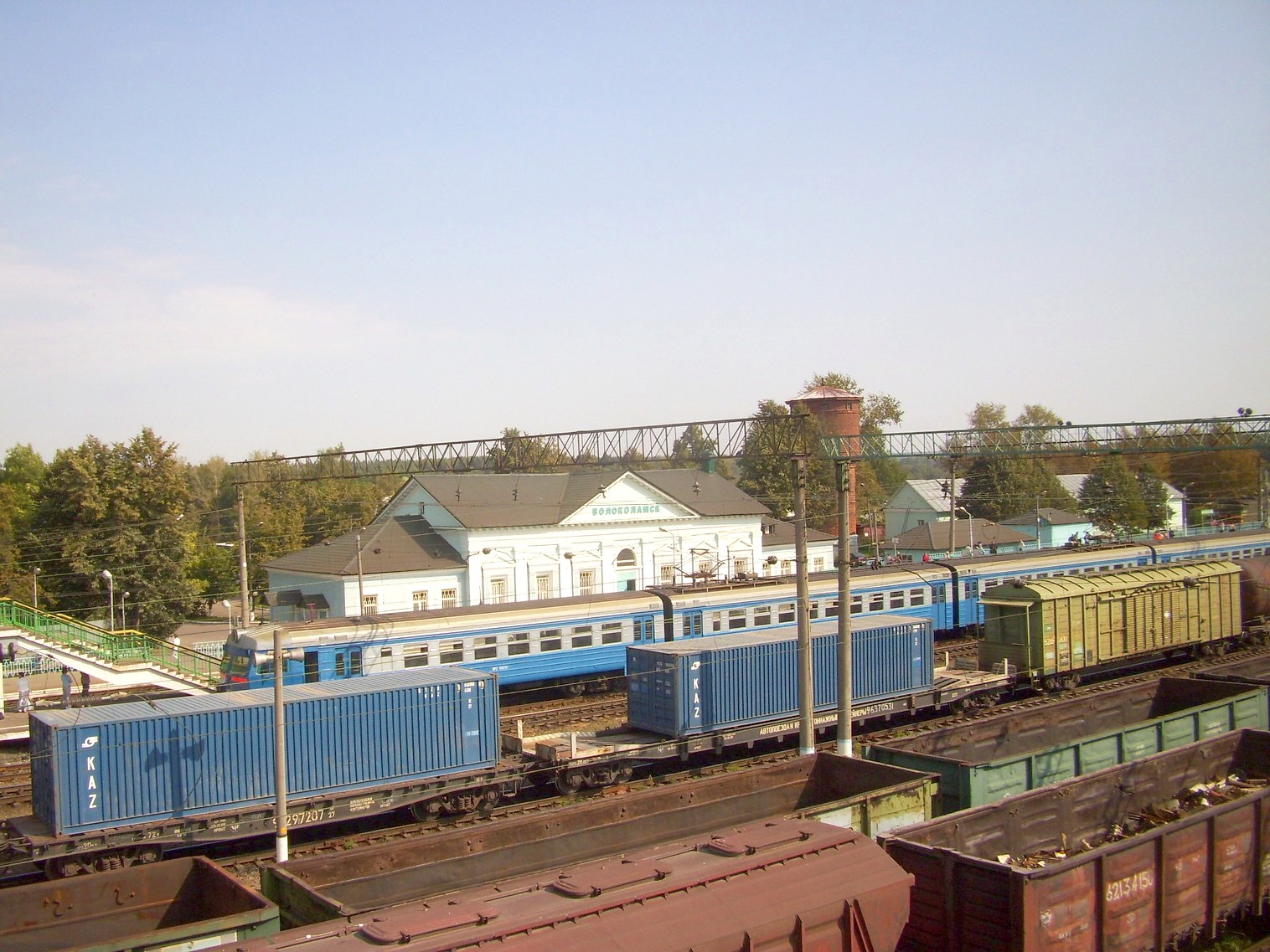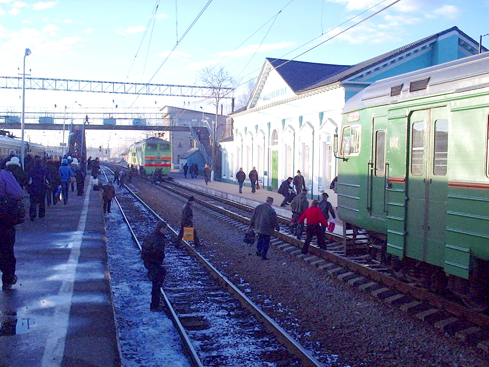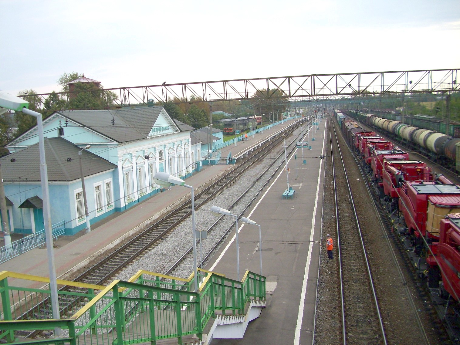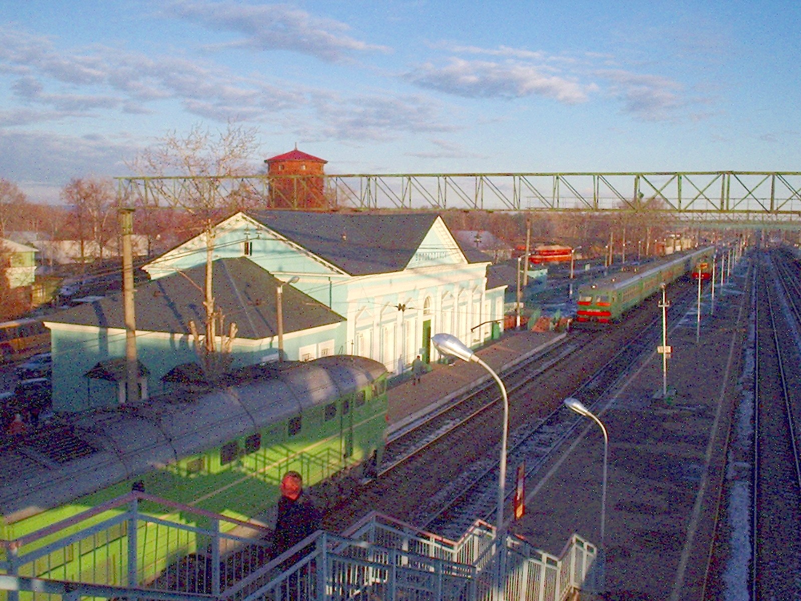Вид с переходного моста на восток. Вокзал, первая платформа, вторая платформа.