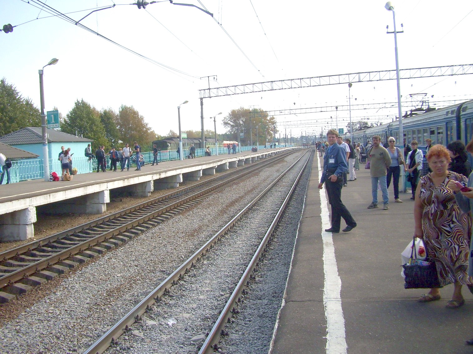 (пассажирская платформа). На третьем пути стоит пригородный поезд