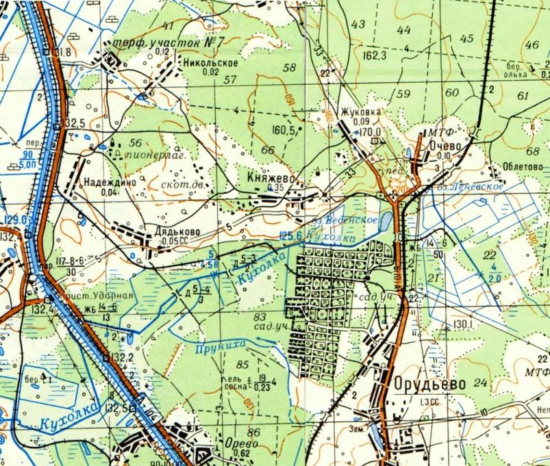 На пике развития (1970-е годы) протяжённость линий узкоколейной железной дороги составляла не менее 20 километров. В Орудьево действовал торфобрикетный завод.