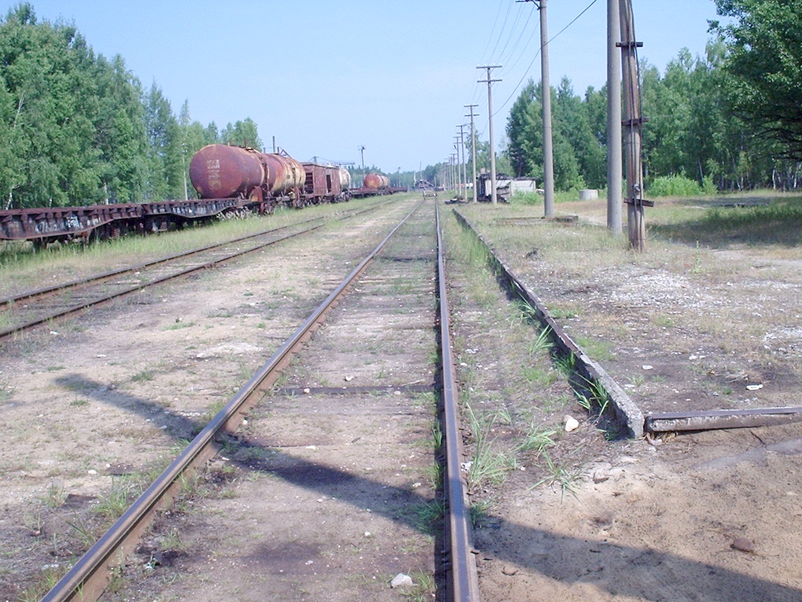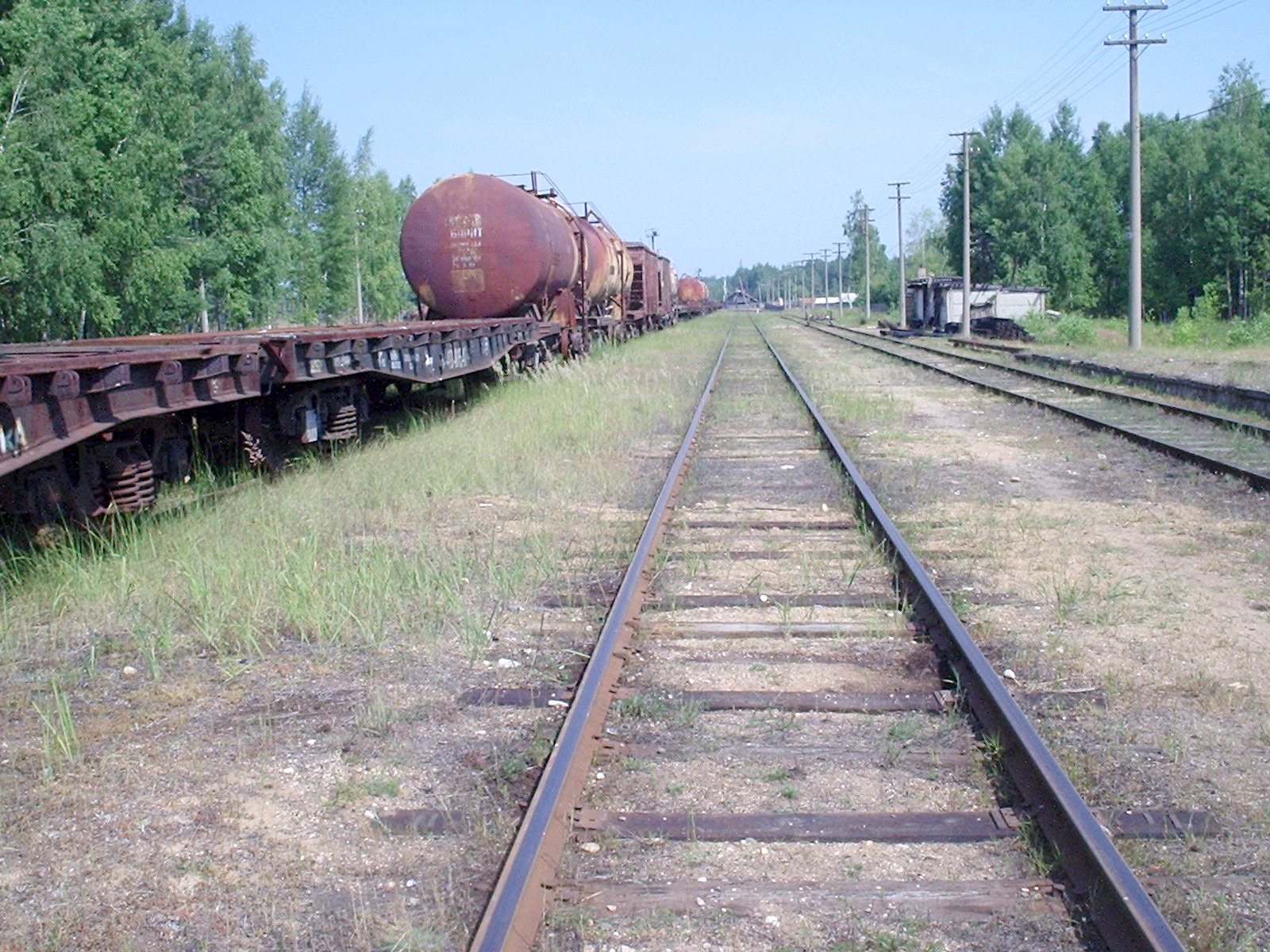 Вид из той же точки в противоположном направлении. Подъездной путь широкой колеи подводит к станции Мещера