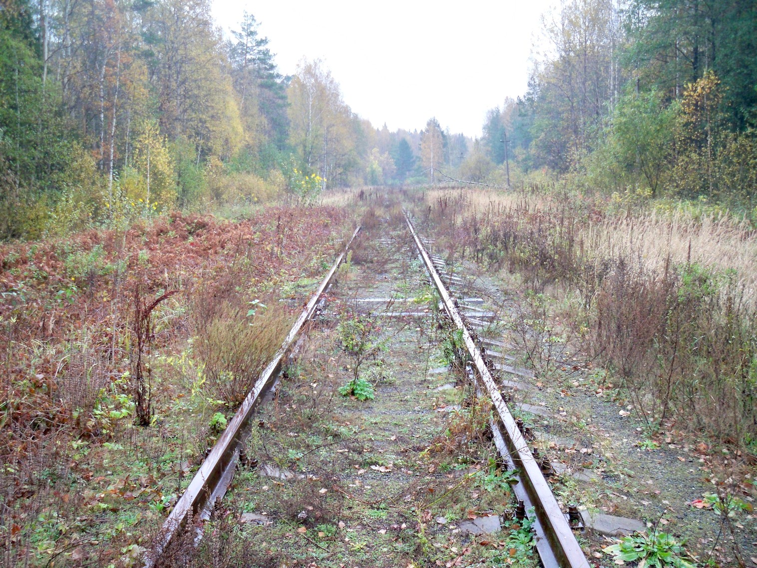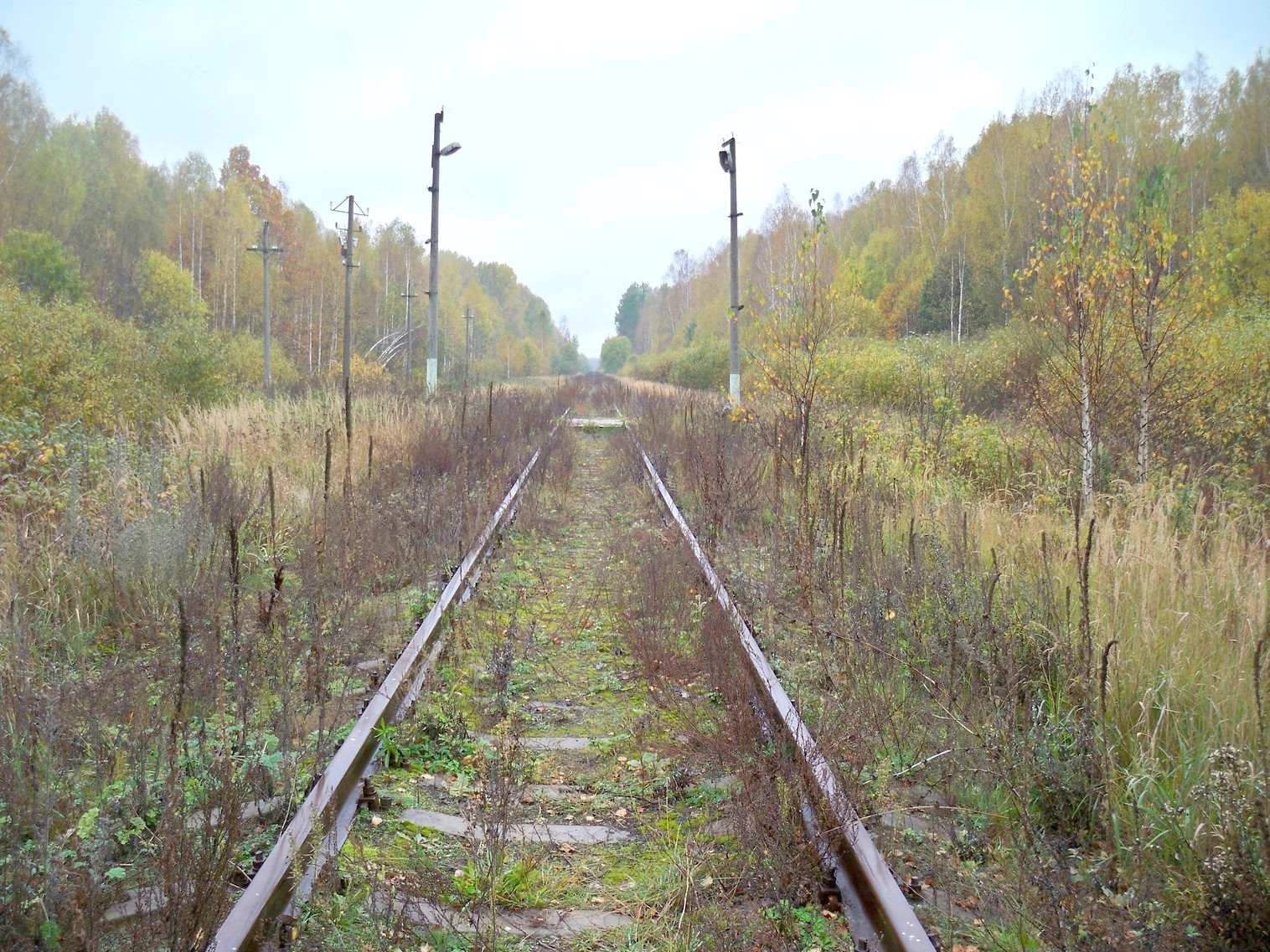 Впереди находится переезд у деревни Пруды. Вид на запад, в сторону станции Сазоново.