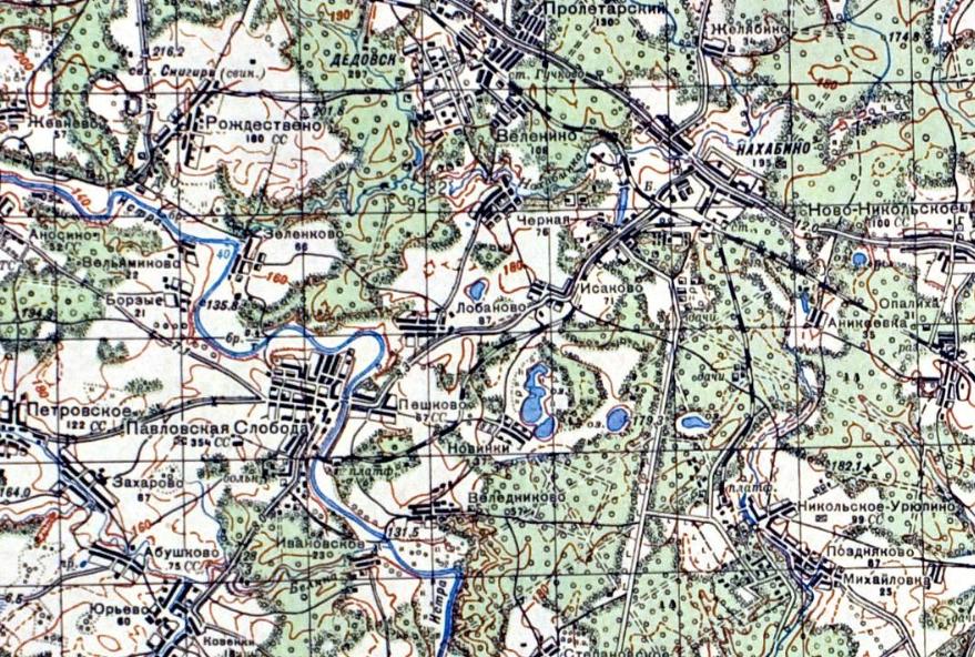 ЖЕЛЕЗНОДОРОЖНАЯ ЛИНИЯ НАХАБИНО — ПАВЛОВСКАЯ СЛОБОДА СХЕМЫ И ТОПОГРАФИЧЕСКИЕ КАРТЫ