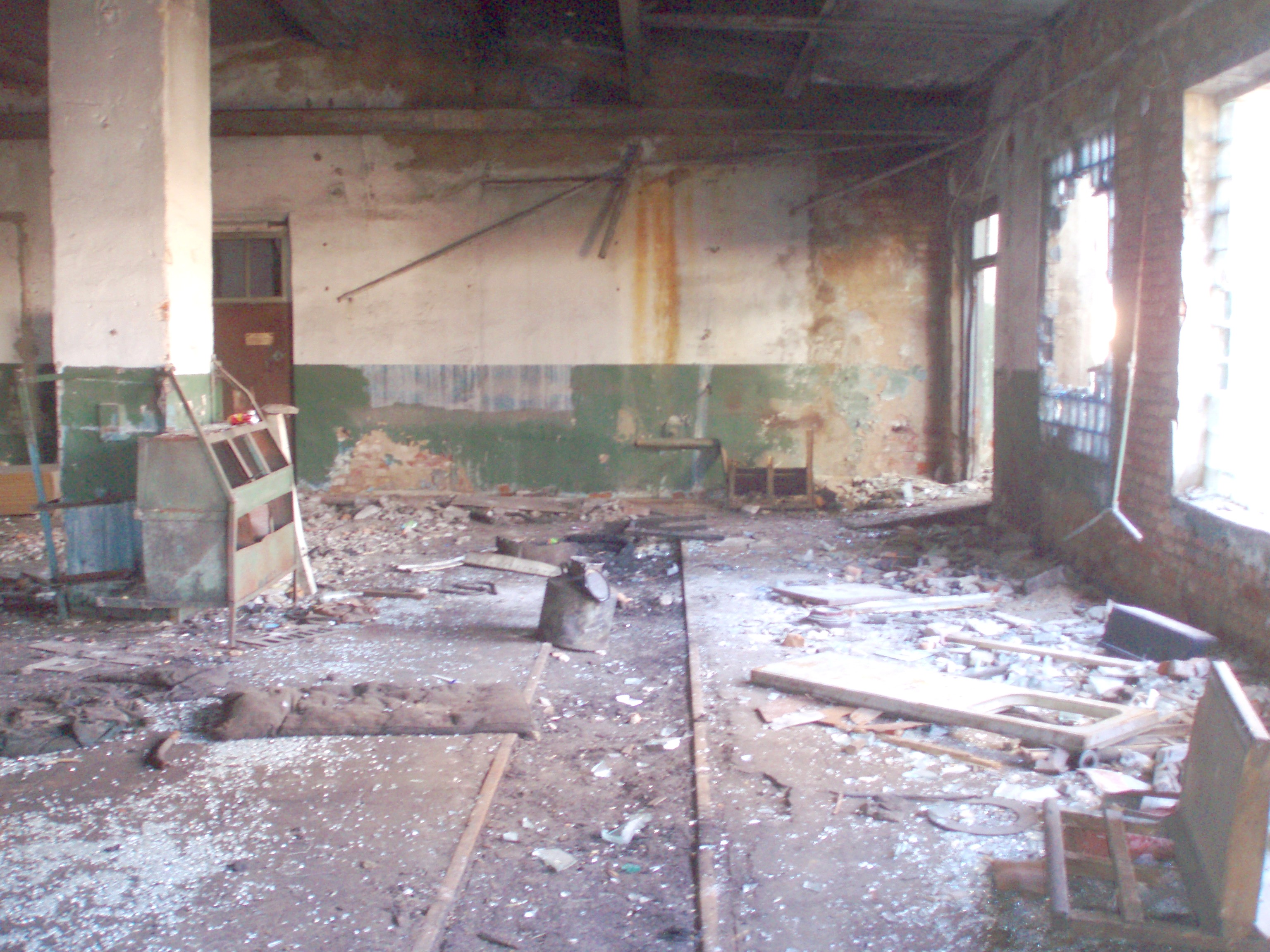 Разграбленное здание диспетчерской на станции Торфяная. Вид со стороны 1-го поста.