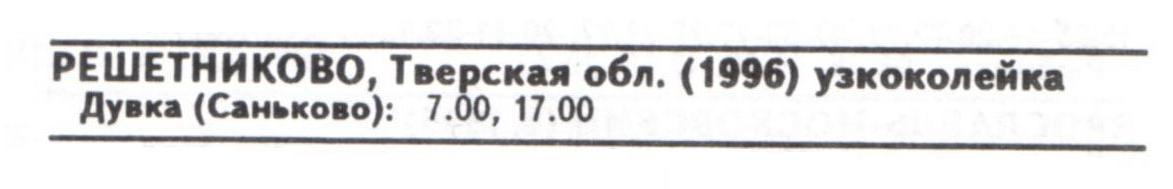 Расписание движения пассажирских поездов по станции Торфяная на 1996 год из первого издания книги