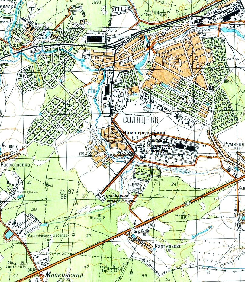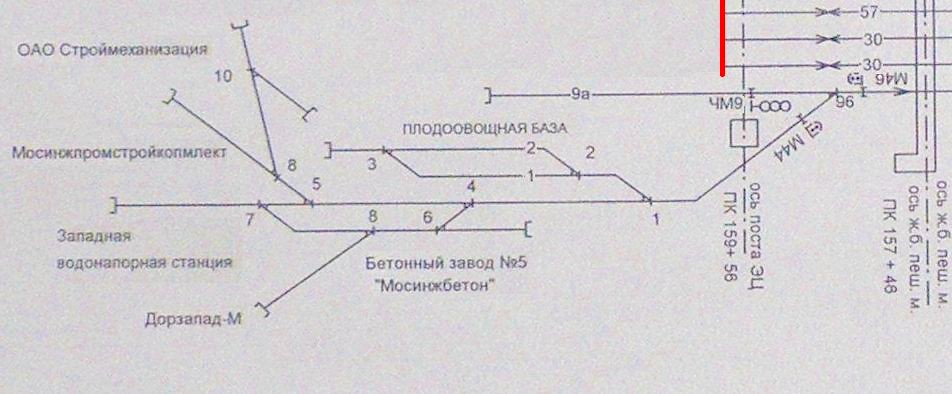 Железнодорожная линия на схеме станции Солнечная, составленной в 2000-х годах.