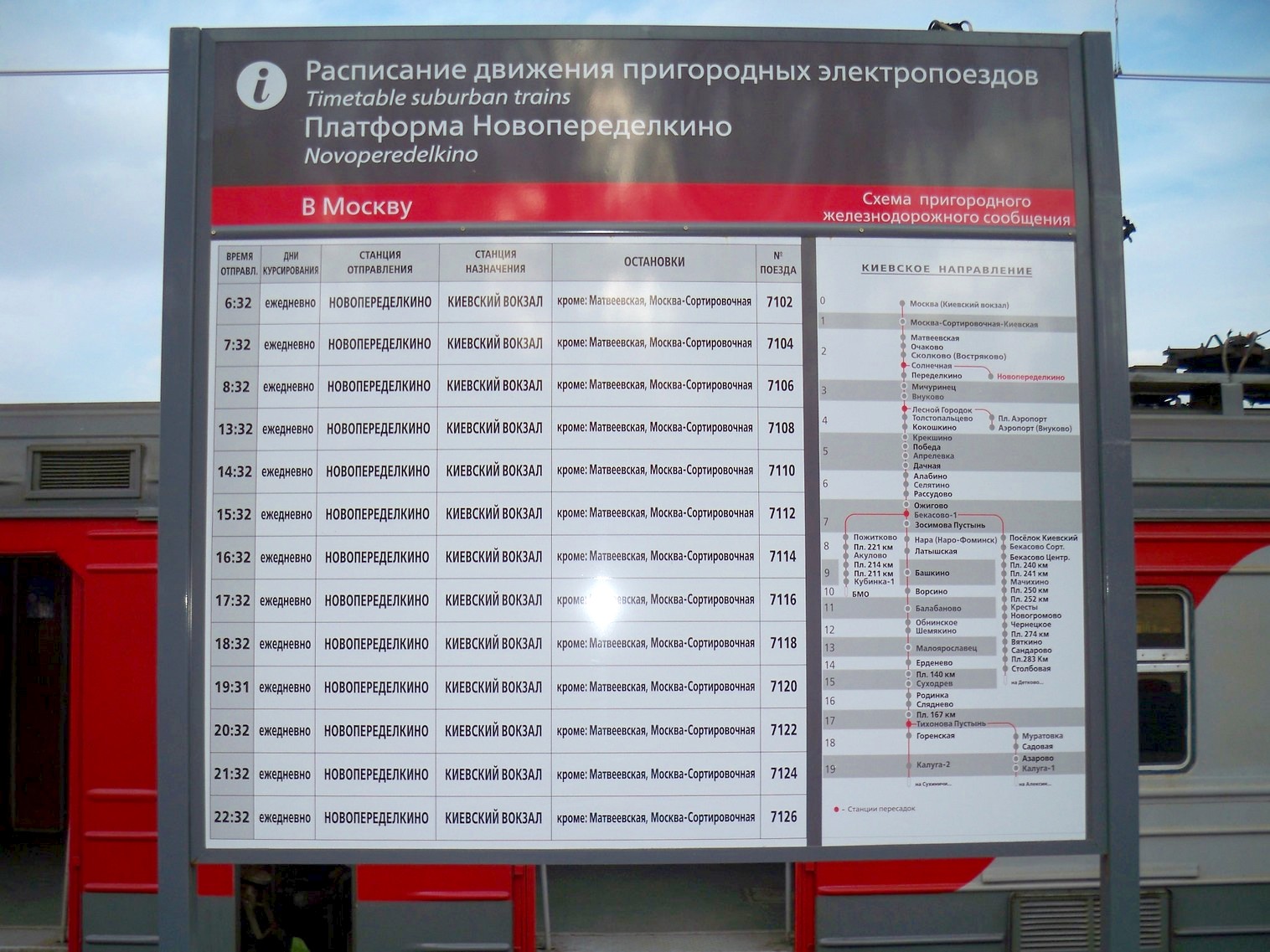Станция Новопеределкино. Расписание движения электропоездов на платформе.