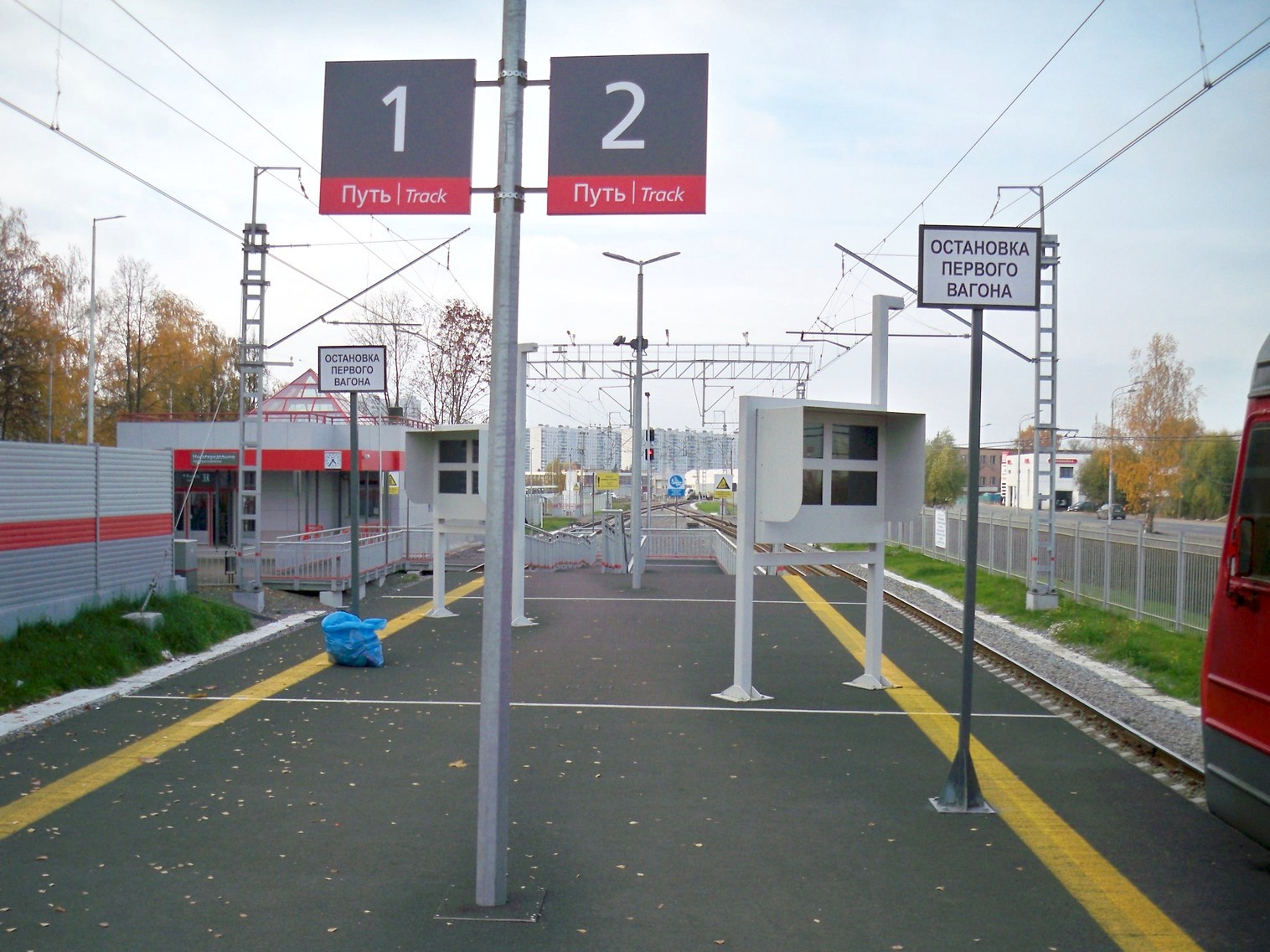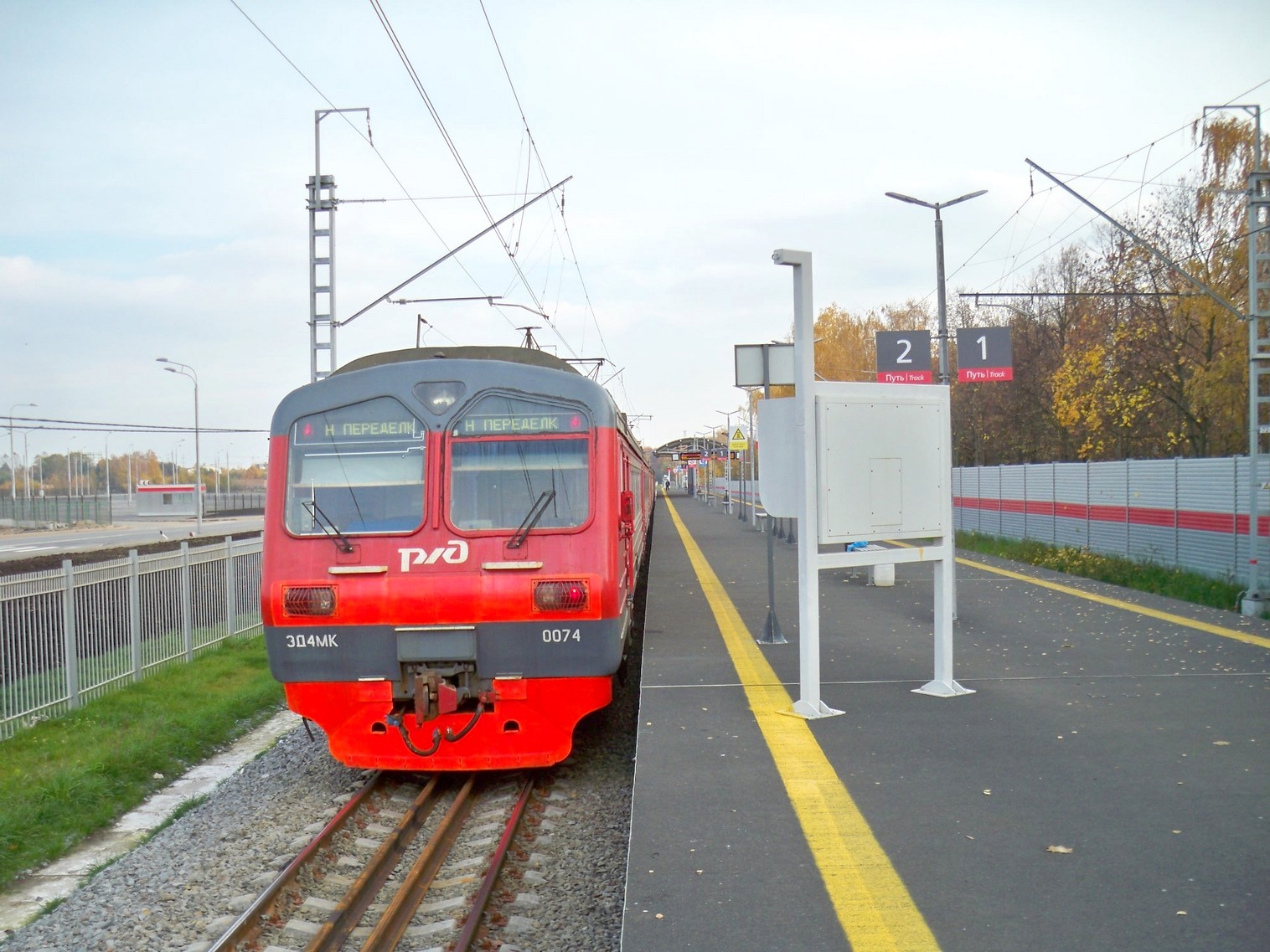 Станция Новопеределкино. Вид в северном направлении. Колонна экстренного вызова.