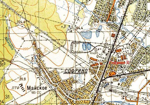 Узкоколейная железная дорога на топографической карте масштаба 1:50 000, изданной в 1965 году.