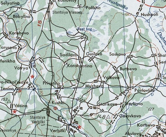 Узкоколейная железная дорога на топографической карте масштаба 1:100 000, изданной в 1941 году.