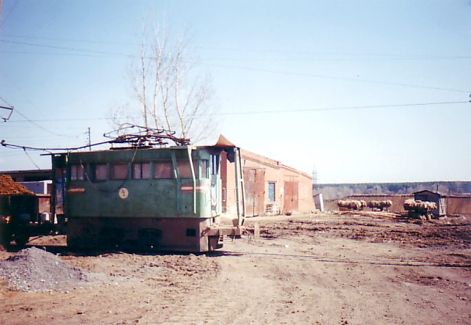 Электровоз с инвентарным номером 4 вблизи завода.