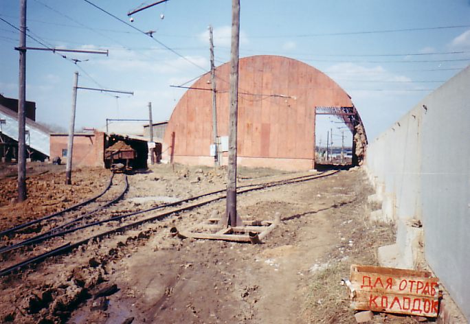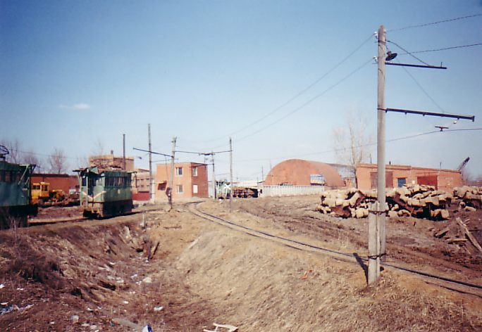 Точка погрузки. Контактный провод находится слева от рельсового пути.