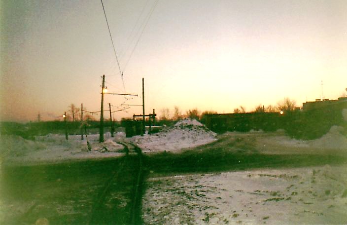 Вид из северного тупика узкоколейной железной дороги в сторону завода.