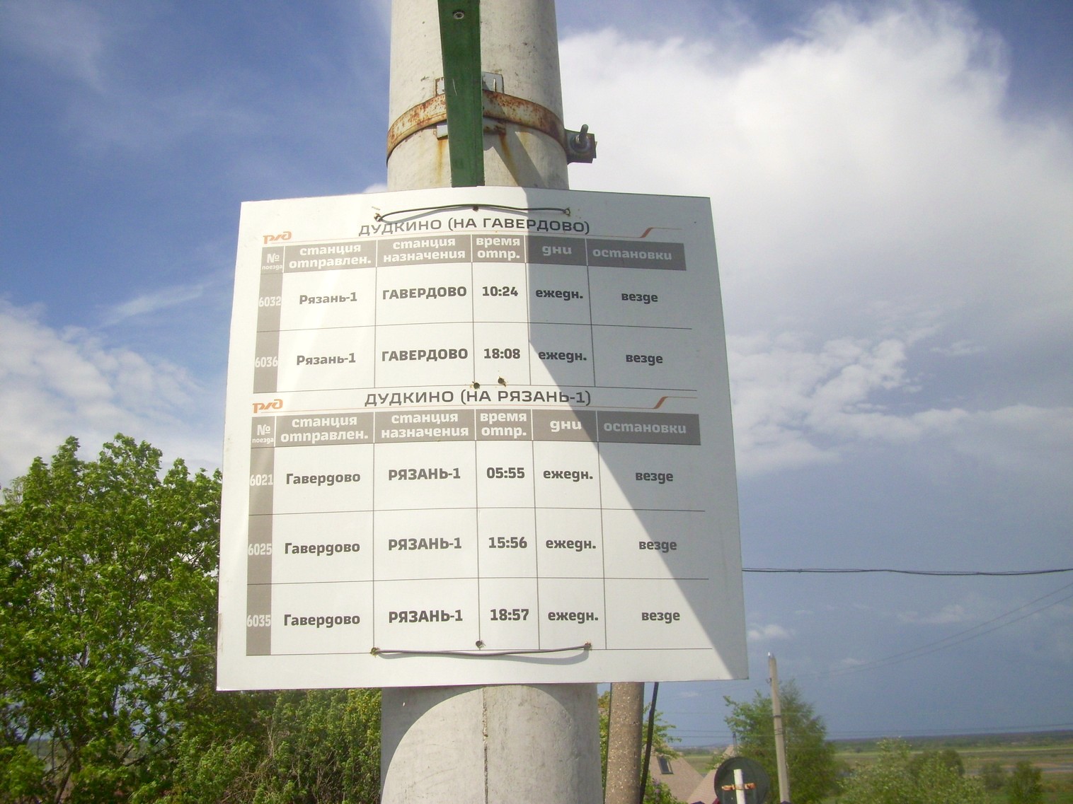 Расписание движения электропоездов, вывешенное на платформе Дудкино.
