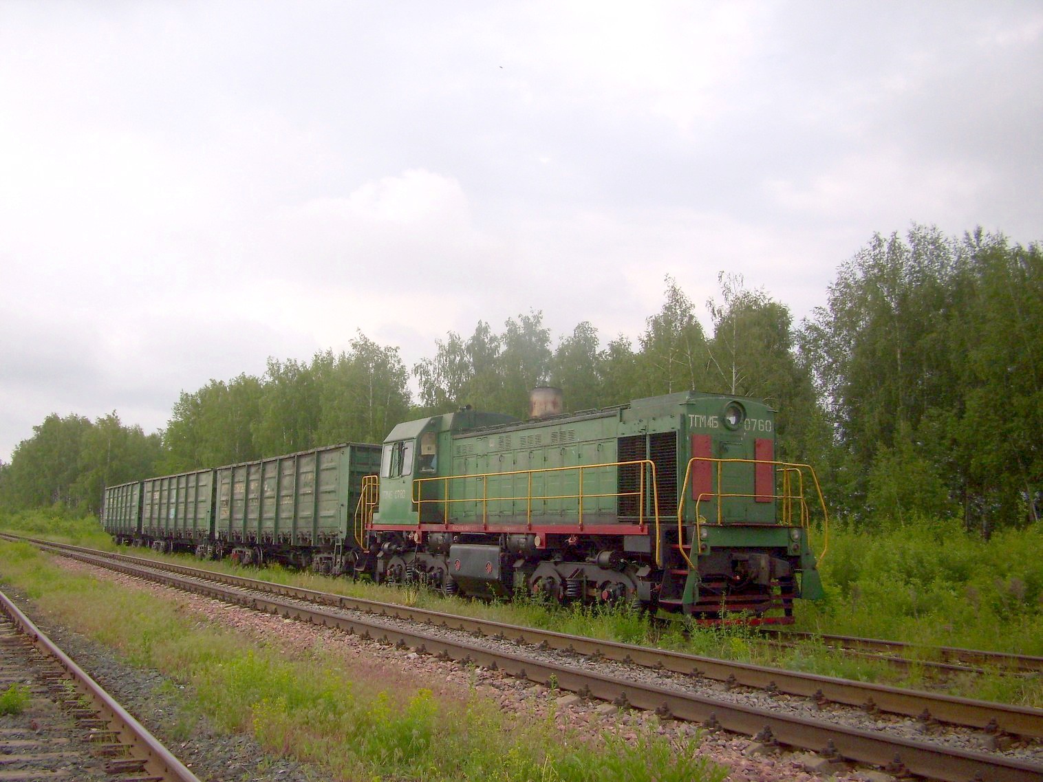 Тепловоз ТГМ4Б-0760 на начальном участке линии у станции Касимов.