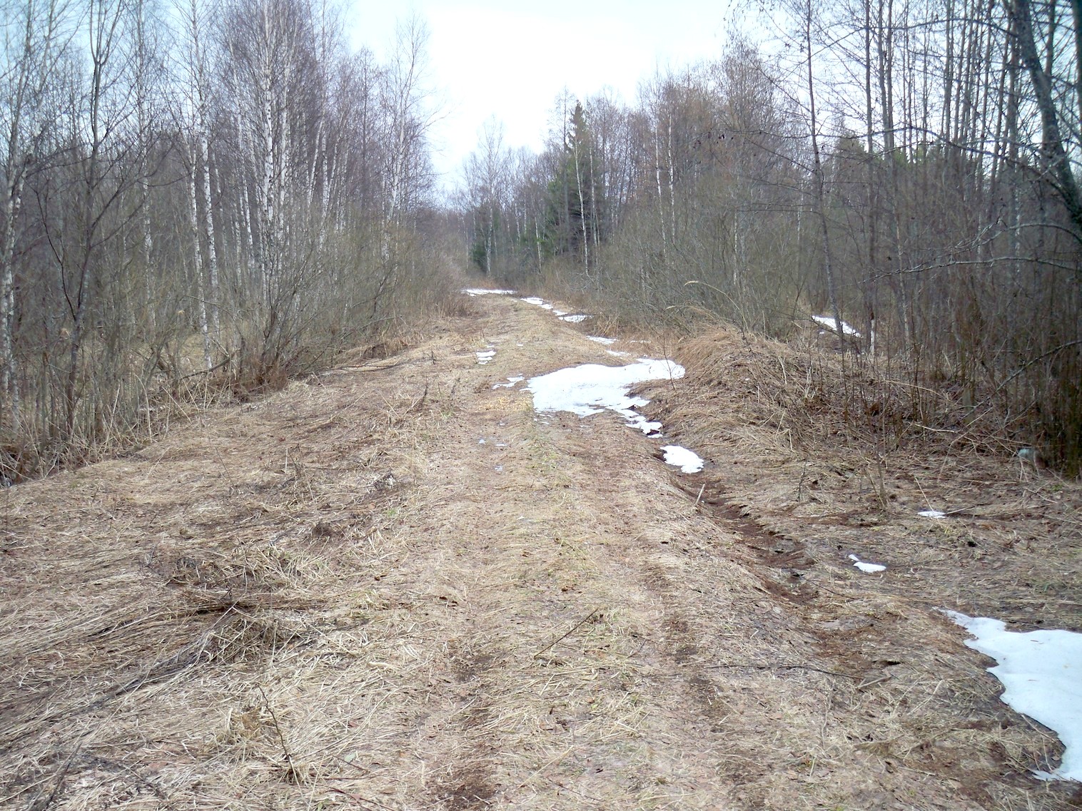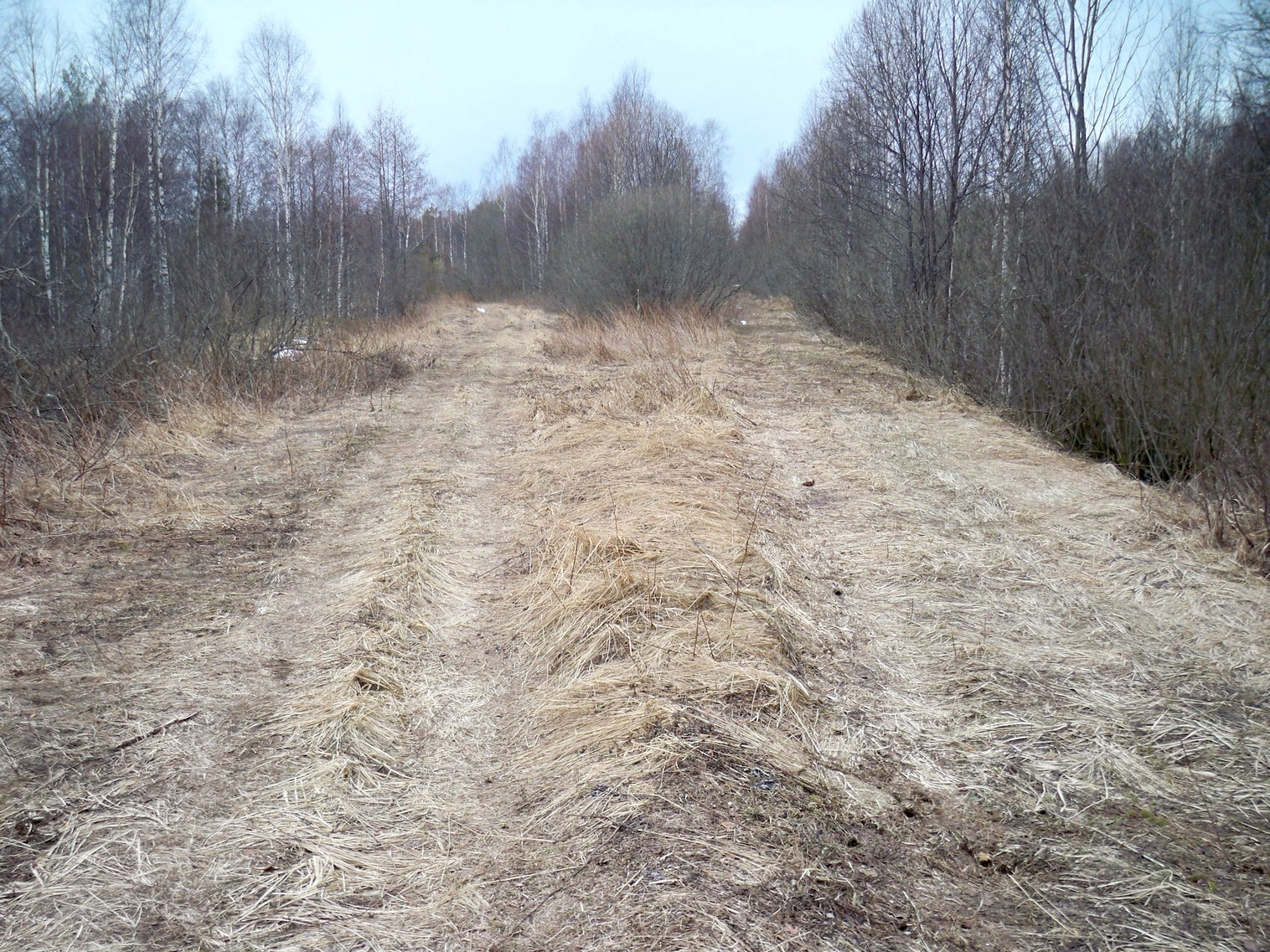 Разобранная линия Кубринск — Вёкса. Вид в сторону Вёксы. Бывший переезд —