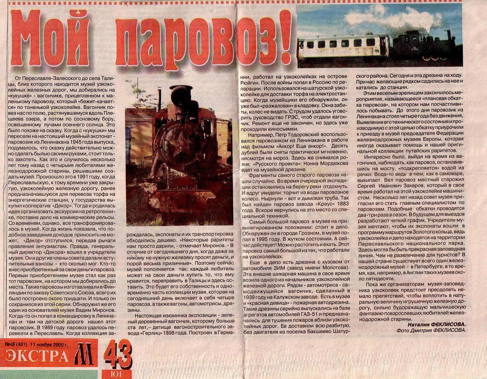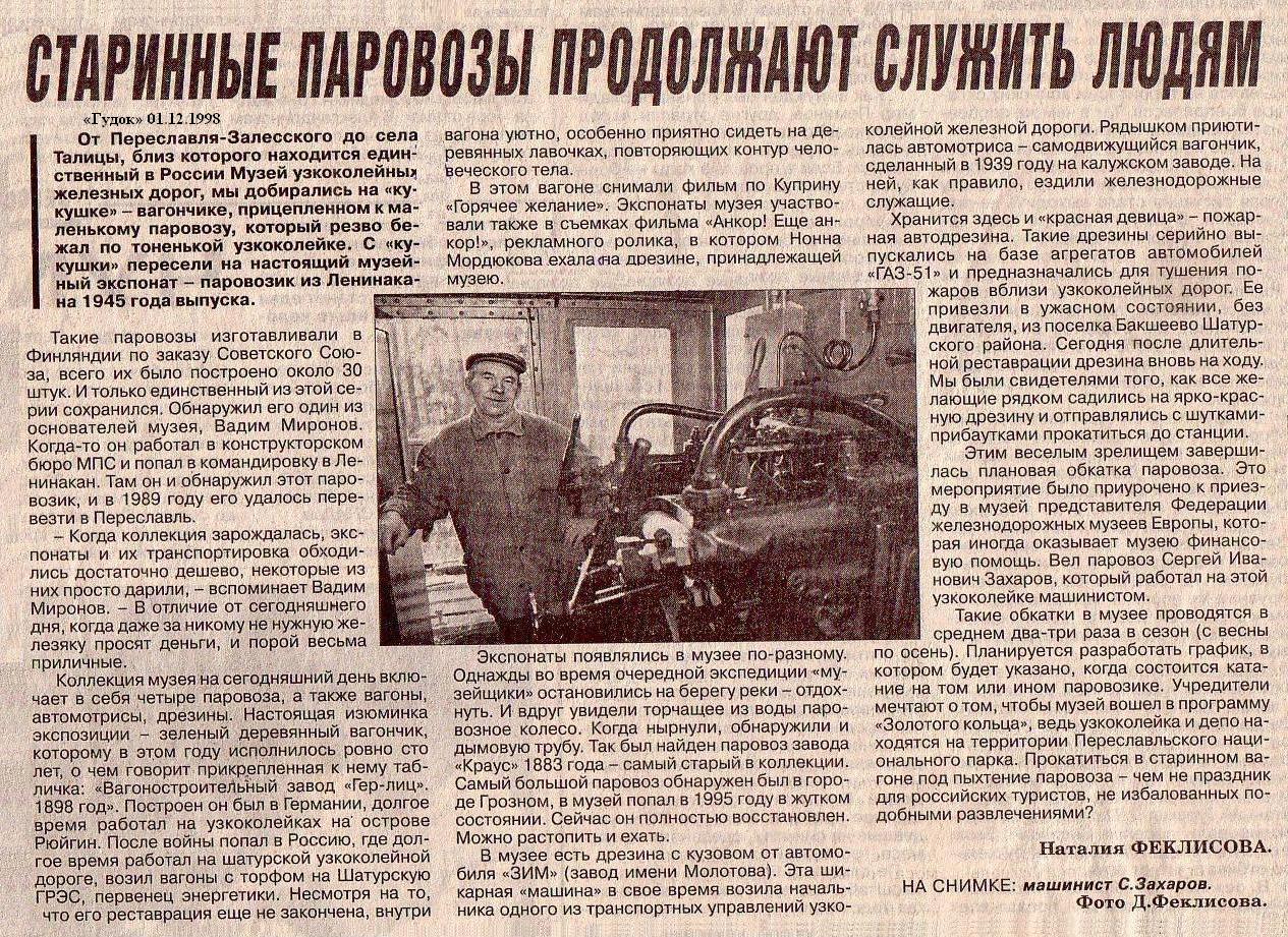 «Старинные паровозы продолжают служить людям» («Гудок», 1998 год).