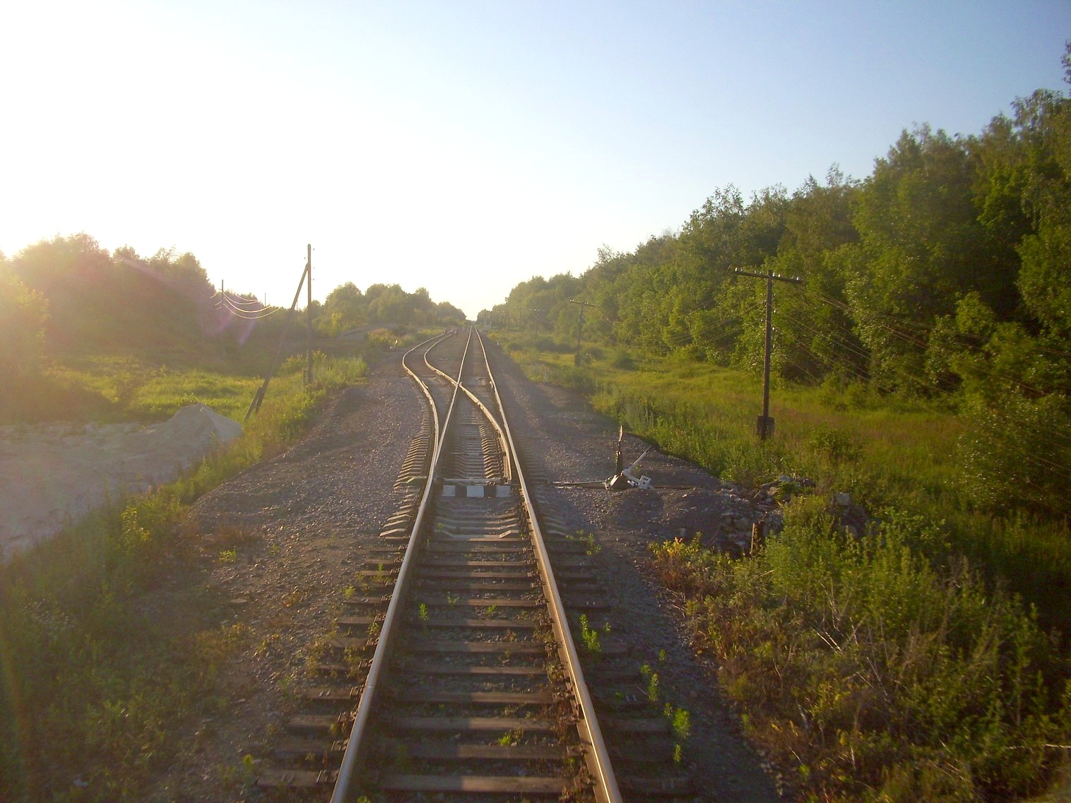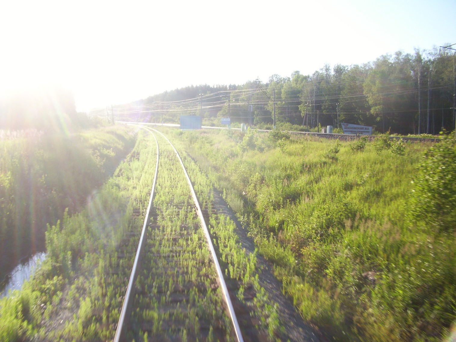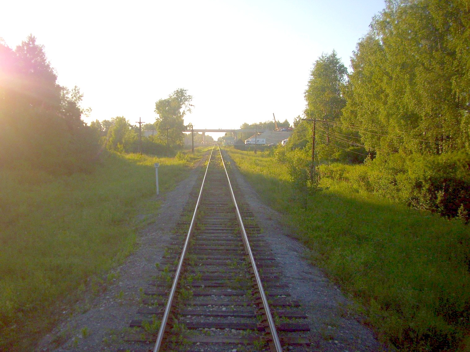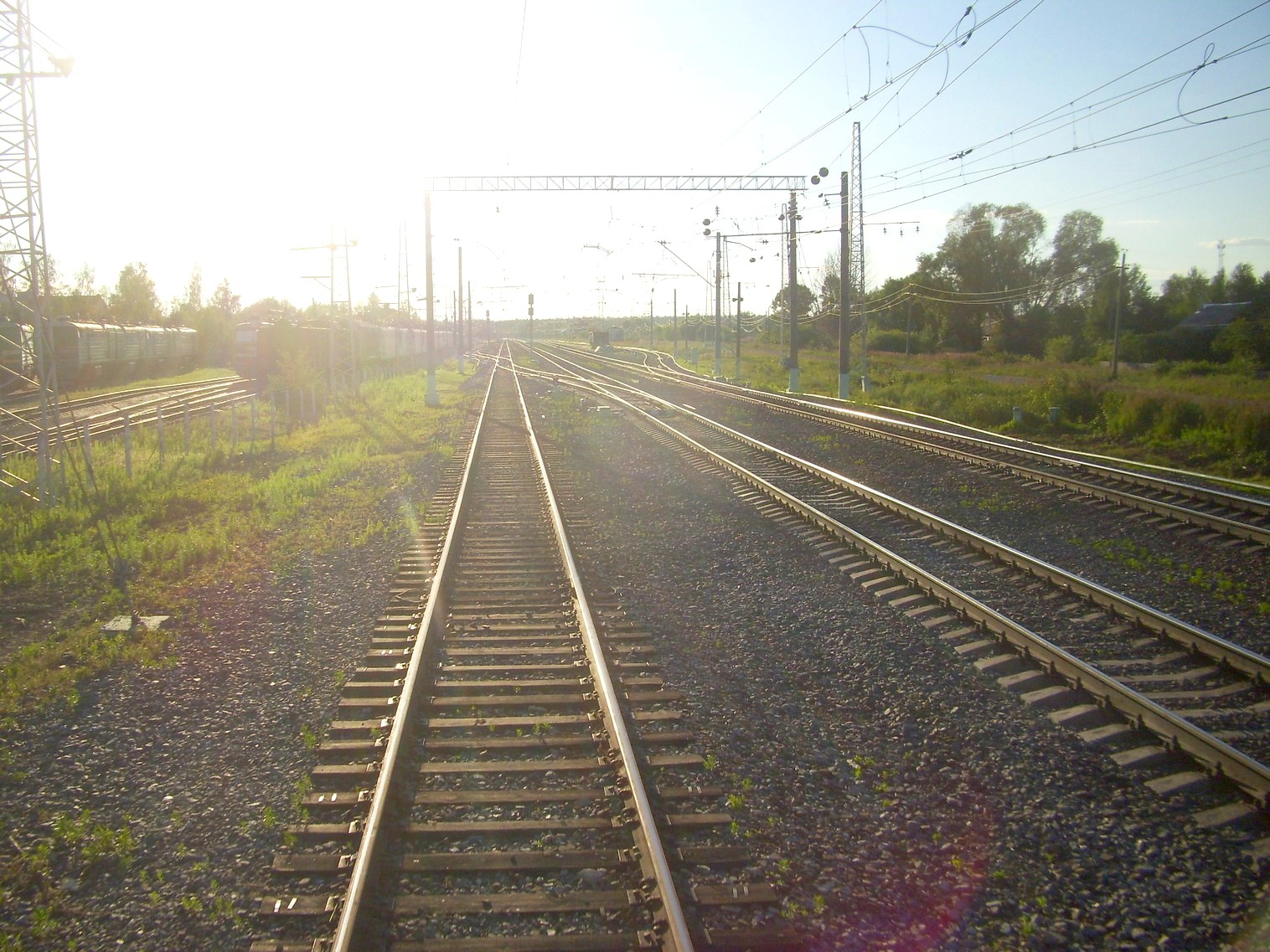 Начальный участок линии у станции Кустарёвка. Двухпутная электрифицированная магистраль уходит в сторону.