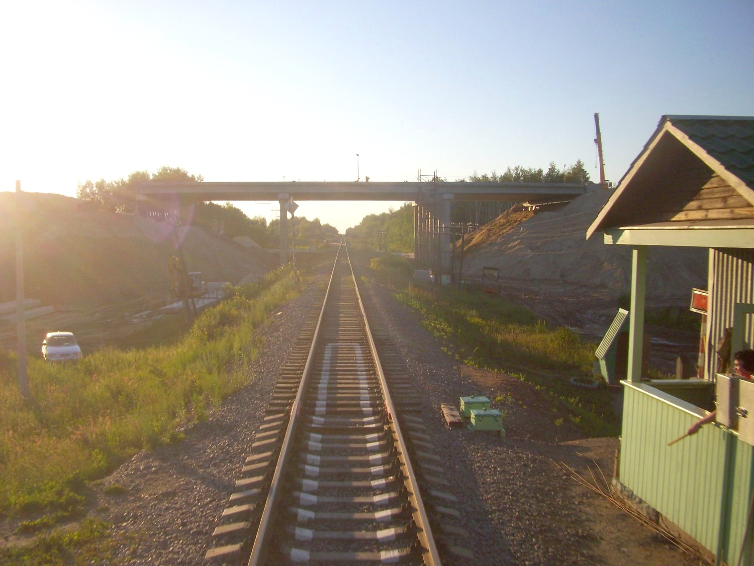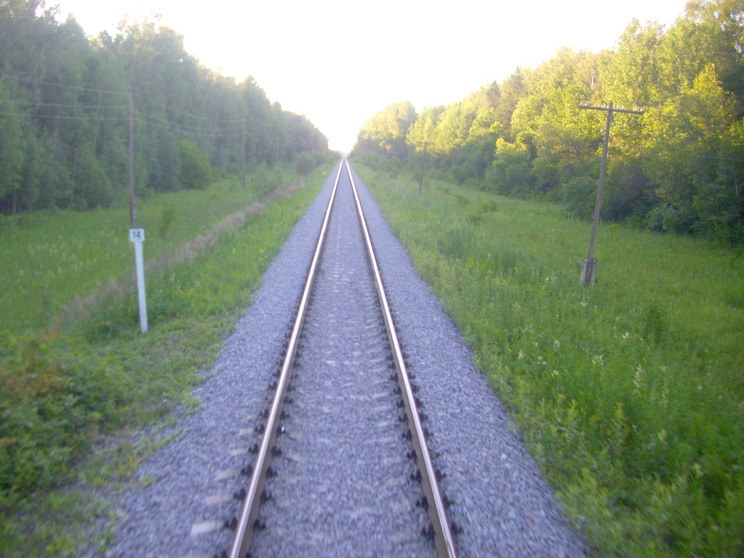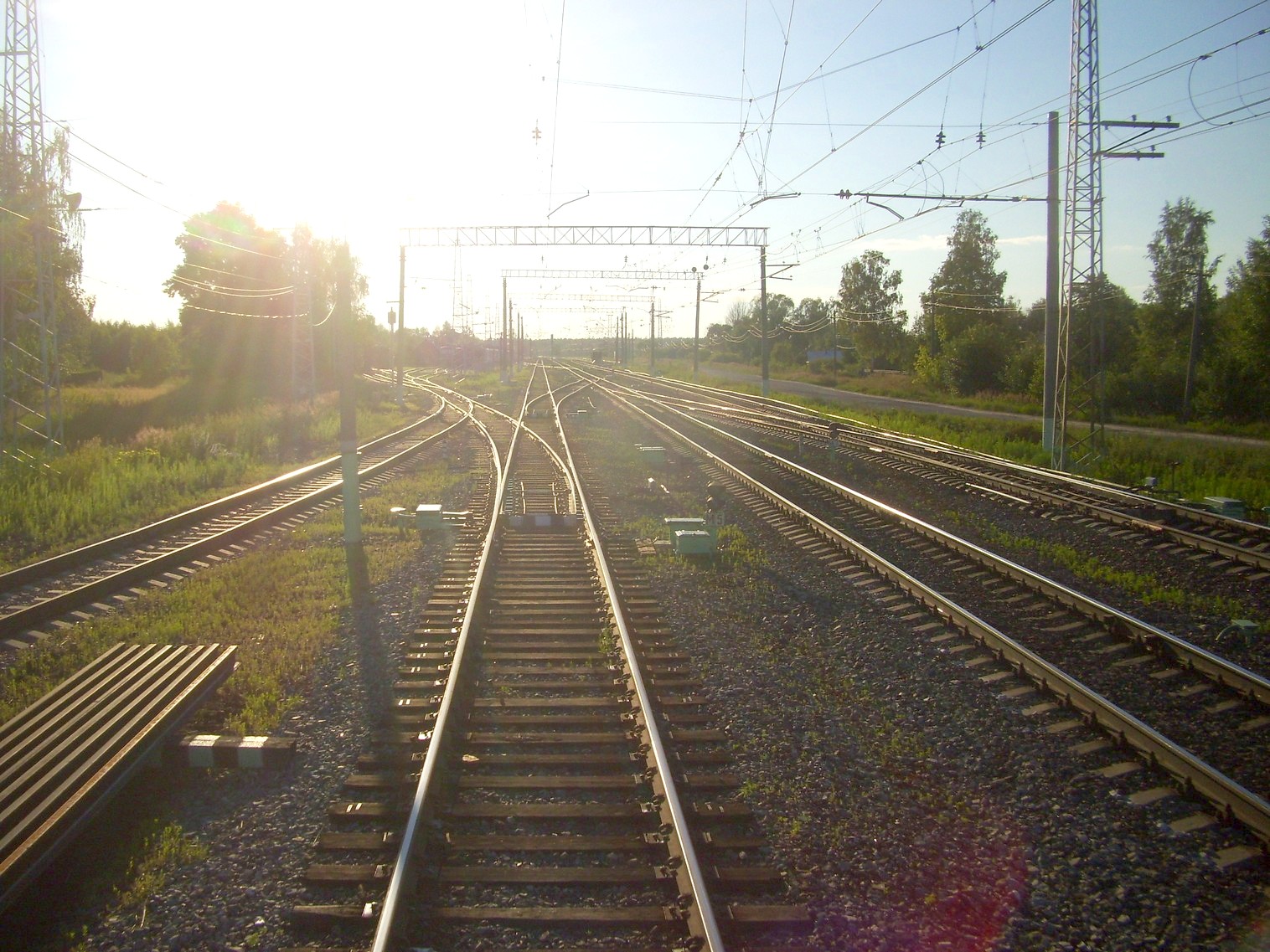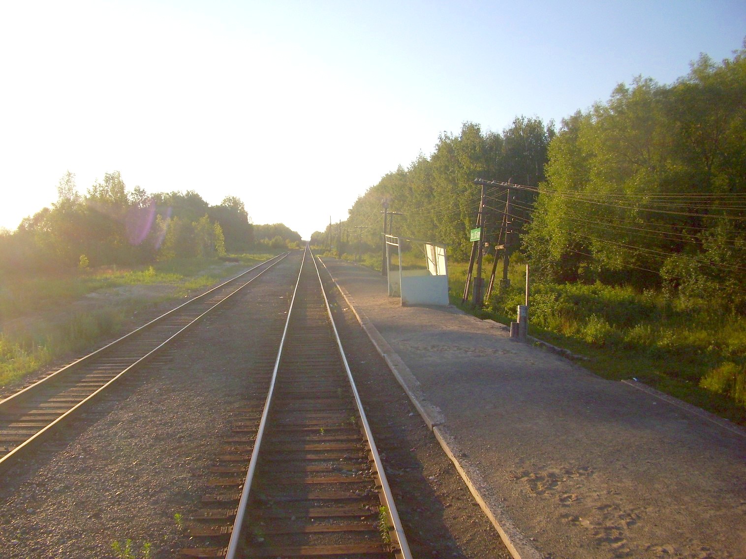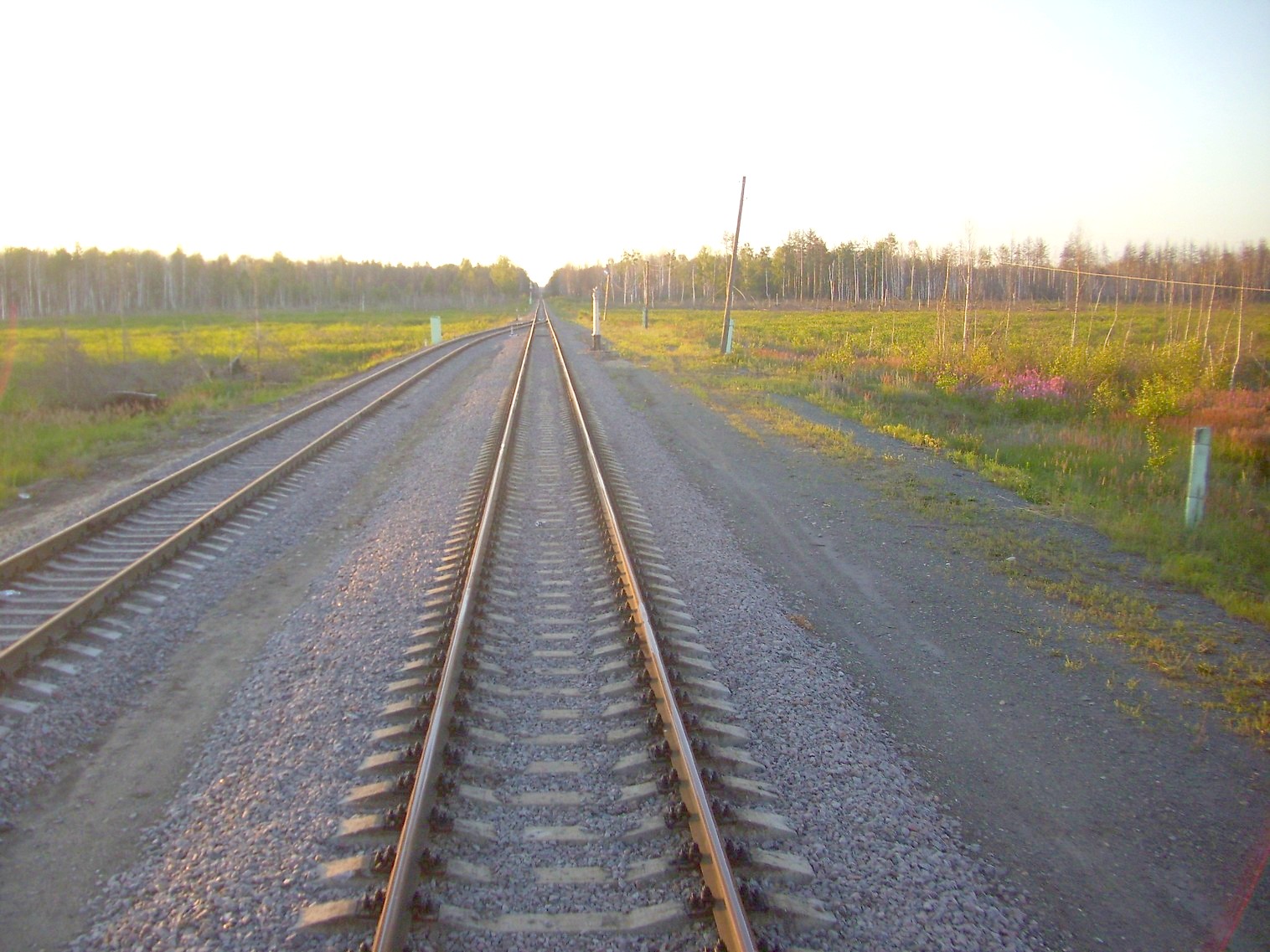 Начальный участок линии у станции Кустарёвка. Двухпутная электрифицированная магистраль уходит в сторону.