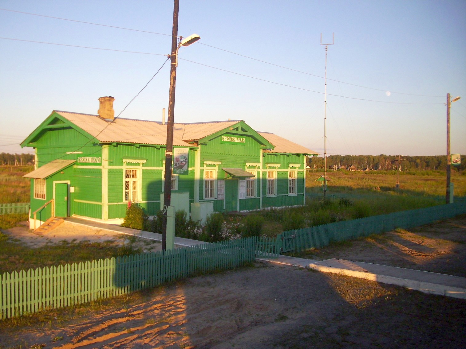 Станция Свеженькая. Посёлок почти полностью сгорел в августе 2010 года.