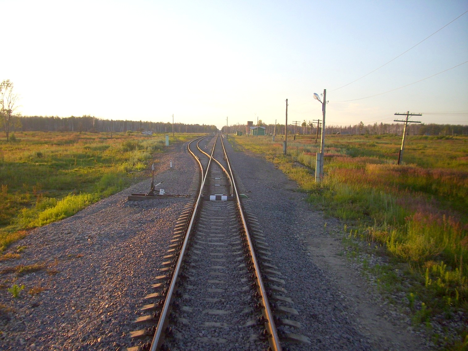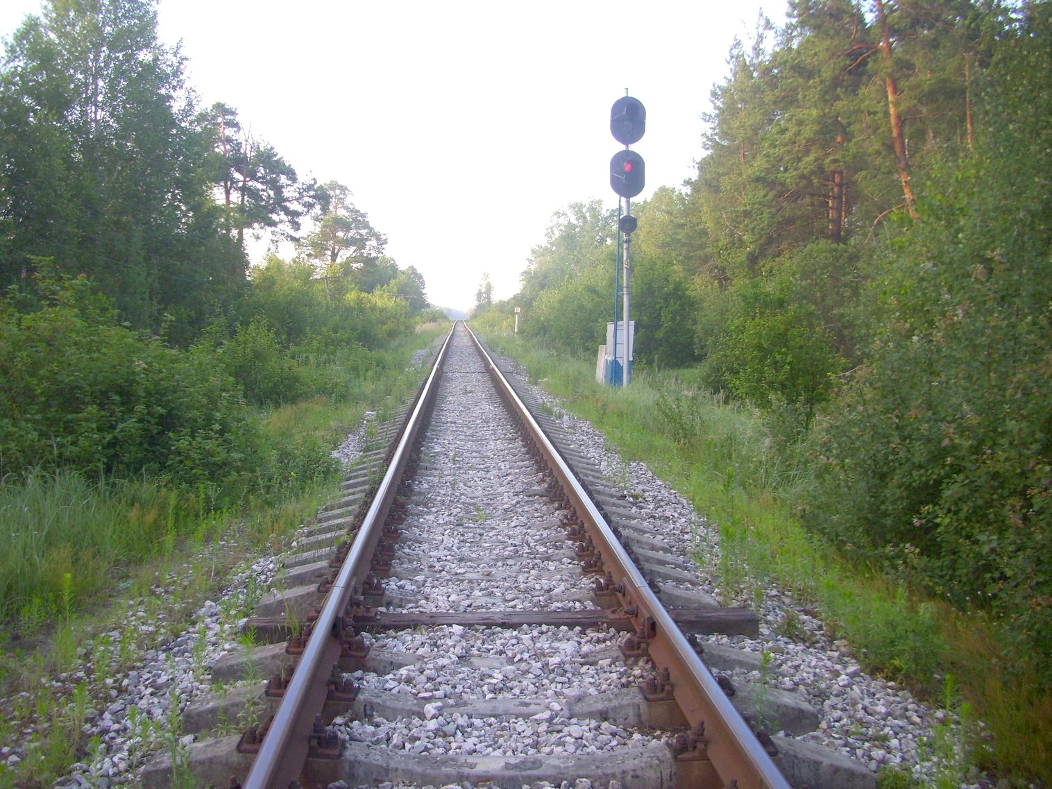 К северу от станции Морсово. Вид на юг, в сторону Вернадовки. Входной светофор станции Морсово.