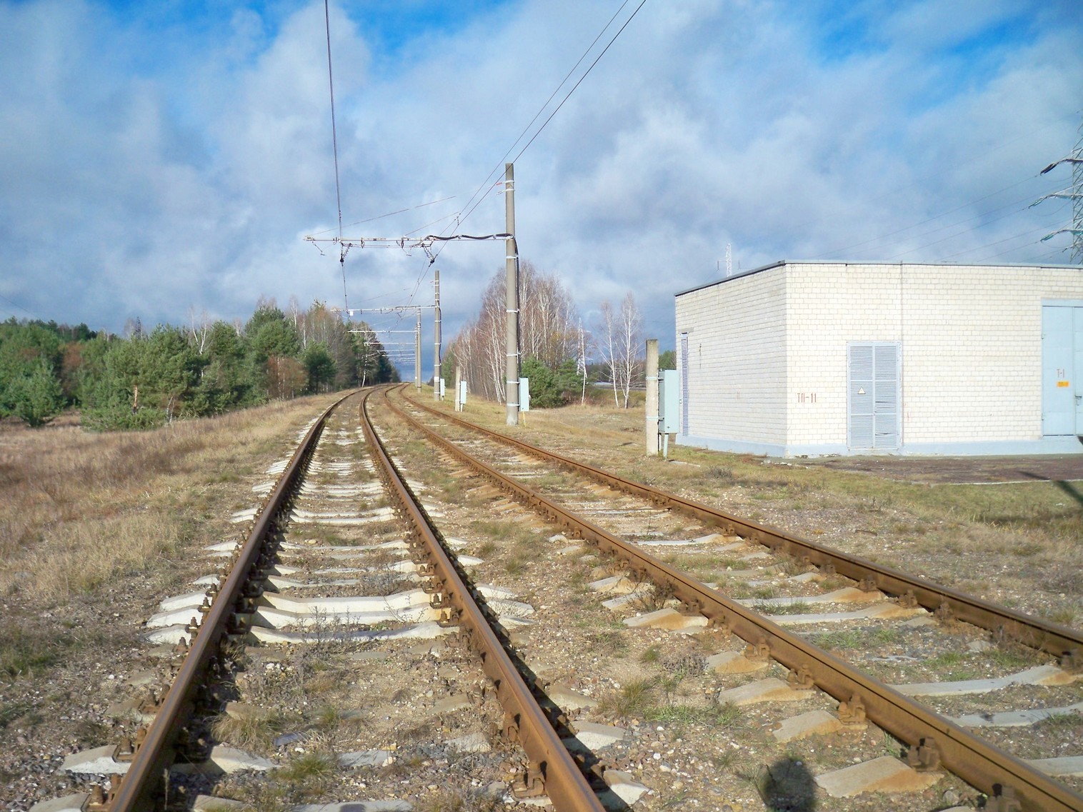 Вид из той же точки в противоположном направлении, в сторону конечной станции «Мозырский НПЗ».
