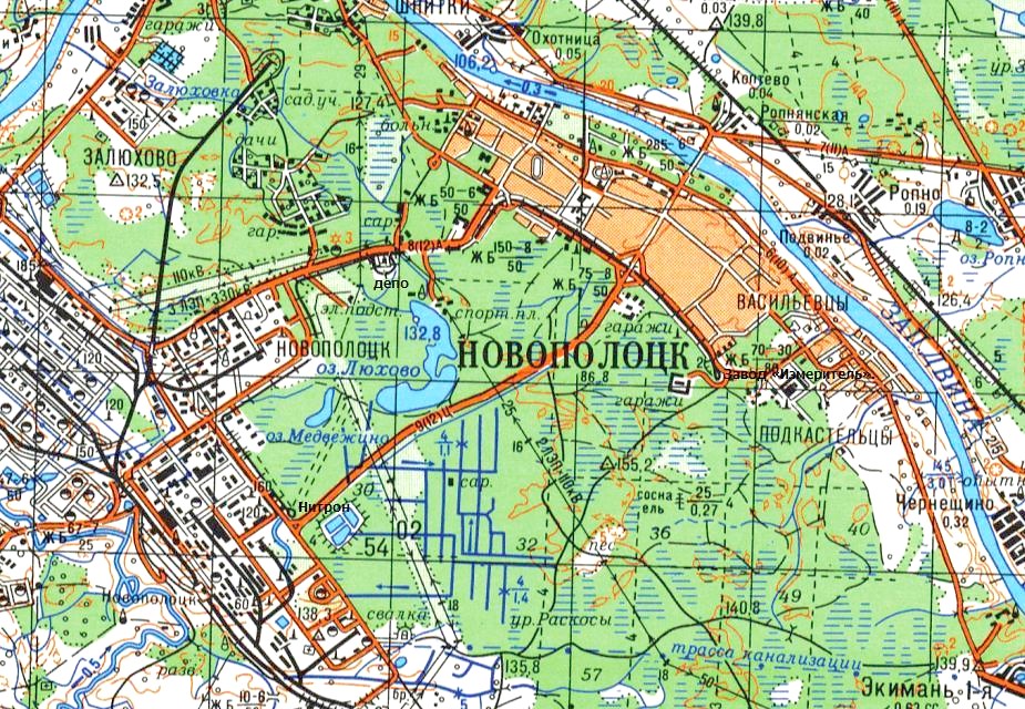 Новополоцкий трамвай на топографической карте масштаба 1:100 000, изданной в 1987 году.