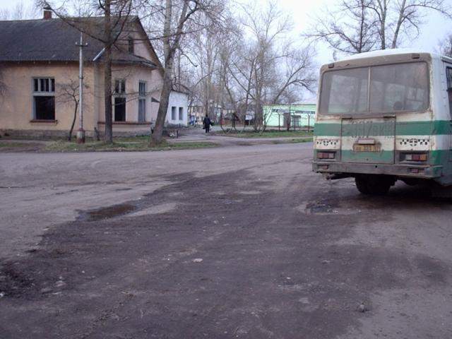 Там же. Справа - автобус, прибывший из Редкино.