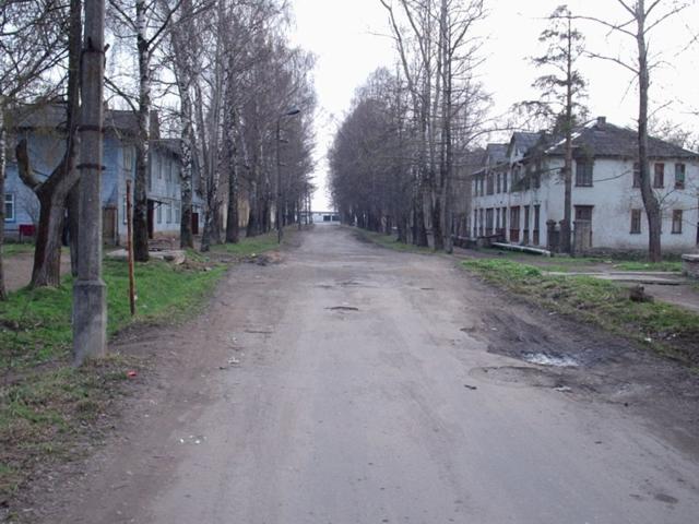 Одна из улиц посёлка Озерки. Вид от центральной площади посёлка в направлении
