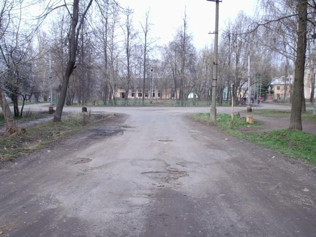 Вид из той же точки в обратную сторону. Впереди - центральная площадь посёлка Озерки.